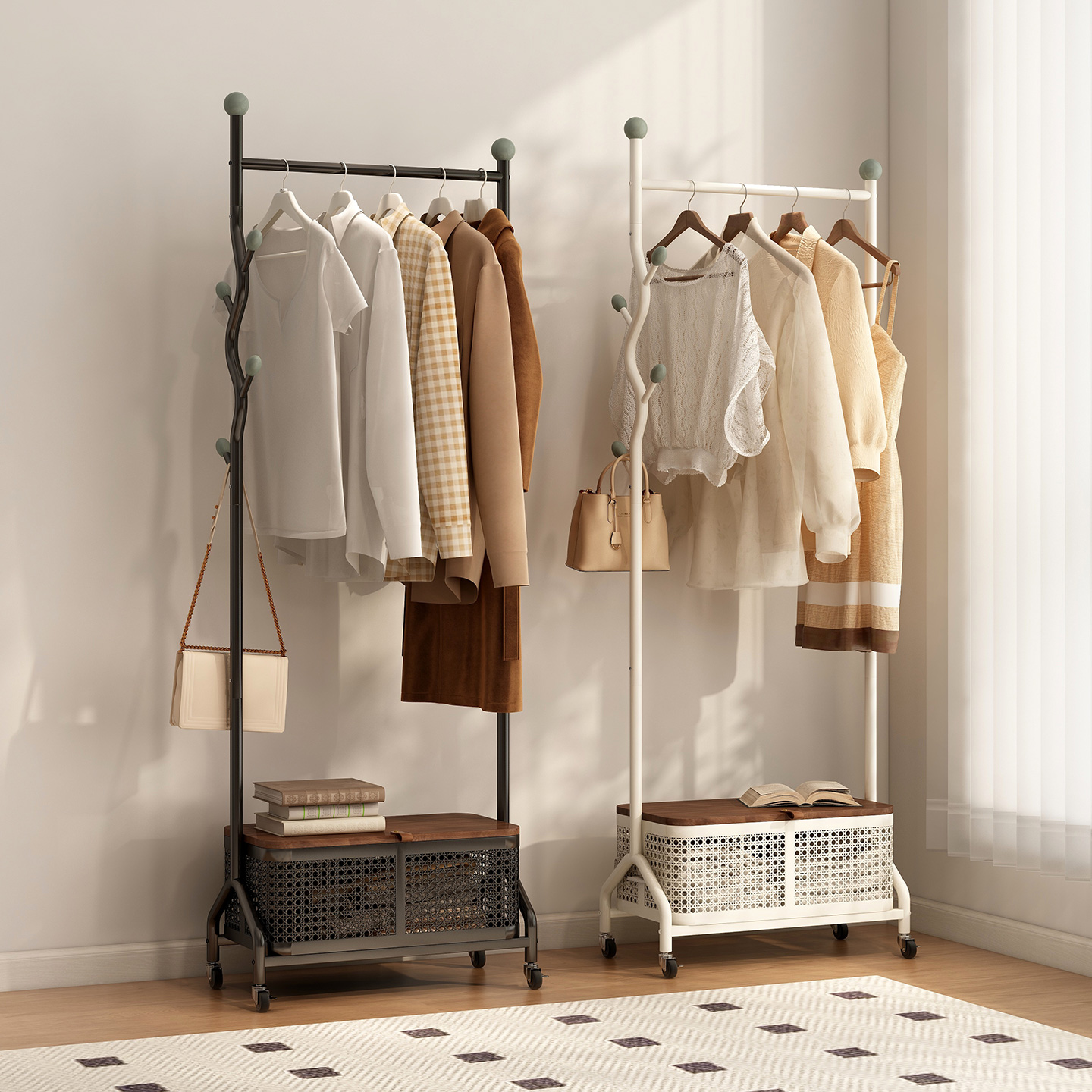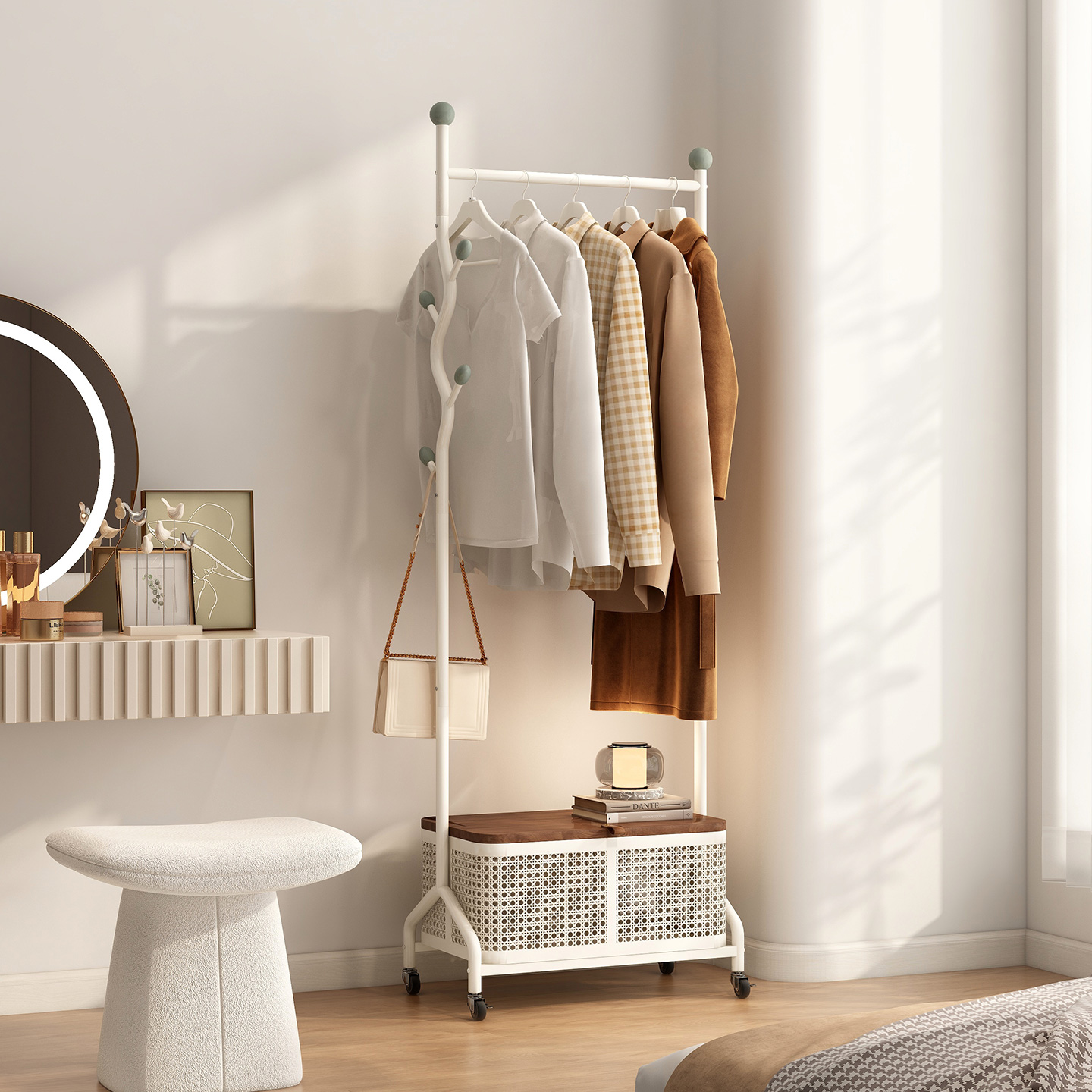 您的位置:他他商城  >  居家  >  衣架卧室落地简易挂衣架家用客厅衣服收纳架子奶油风可移动衣帽架