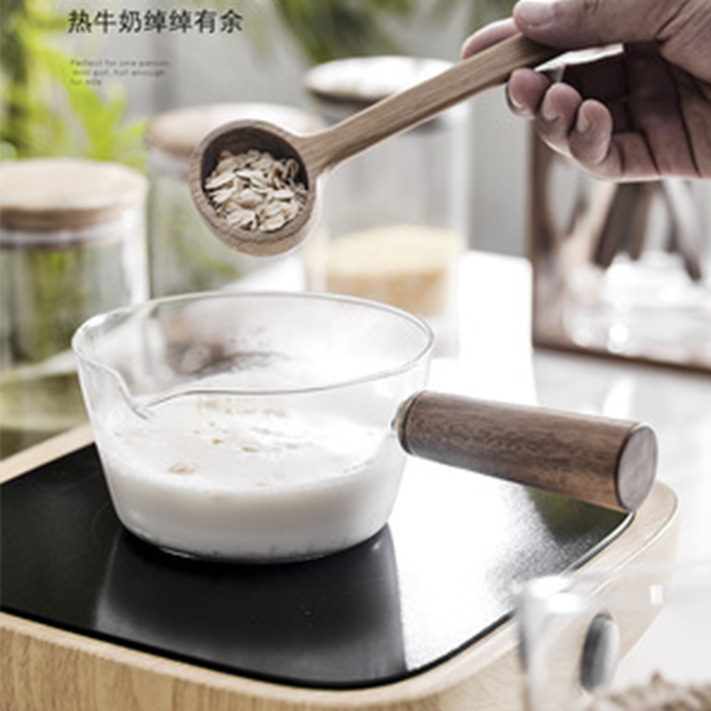 家用玻璃奶锅泡面碗相思木把手可以明火燃气灶试用婴儿辅食沙拉锅