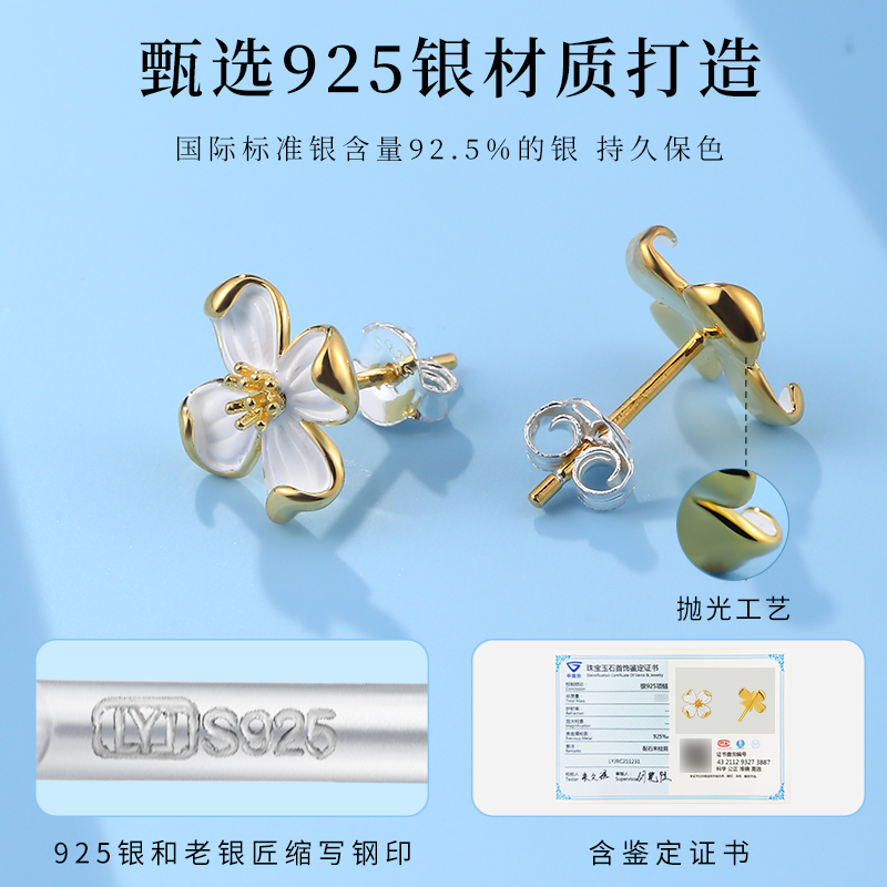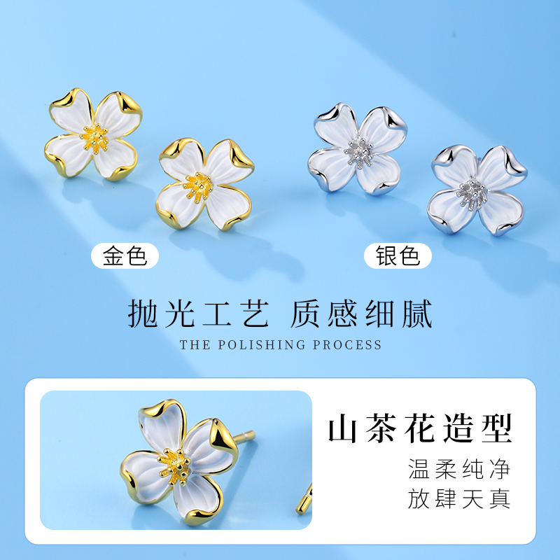 老银匠s925银山茶花耳钉小众设计感气质情人节礼物通勤纯银耳饰女 - 老银匠饰品旗舰店