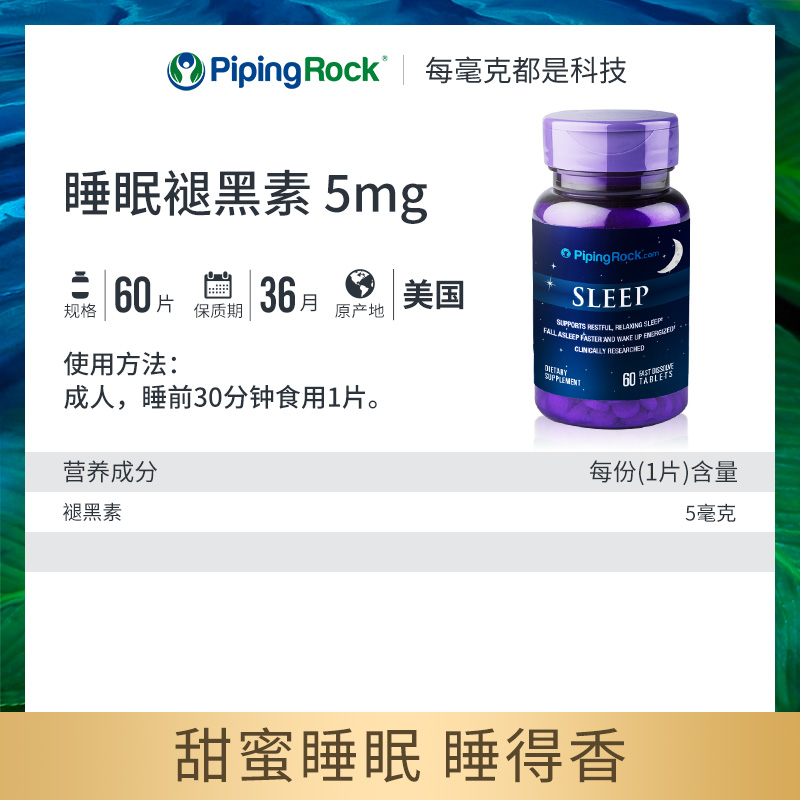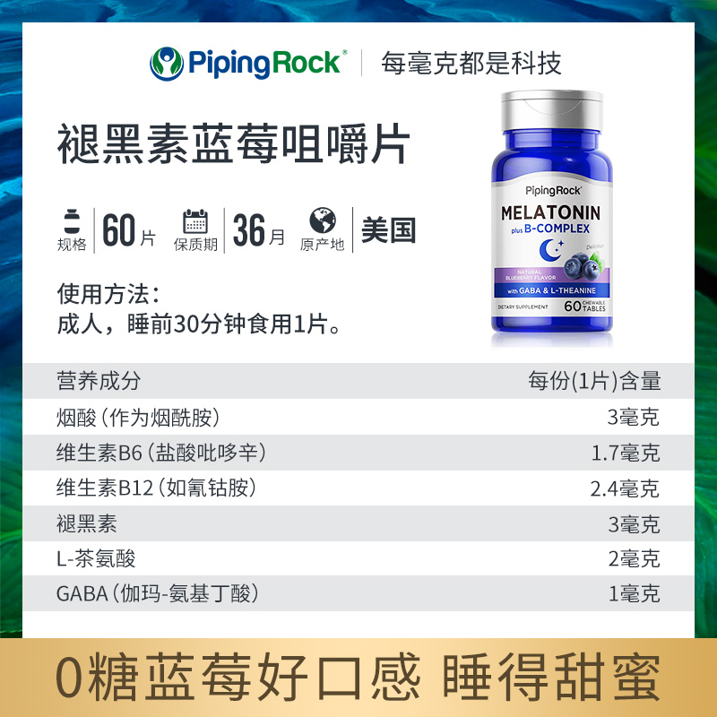 bt美国朴诺褪黑素5mg睡眠退黑素安瓶褪黑色素保健品睡眠糖甜蜜 - pipingrock海外旗舰店