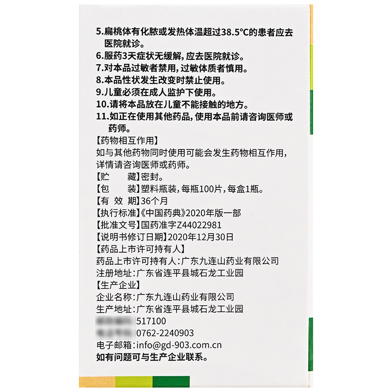 九连山 复方鱼腥草片 100片咽部红肿咽痛急性咽炎急性扁桃体炎等 - 弘毅药品专营店