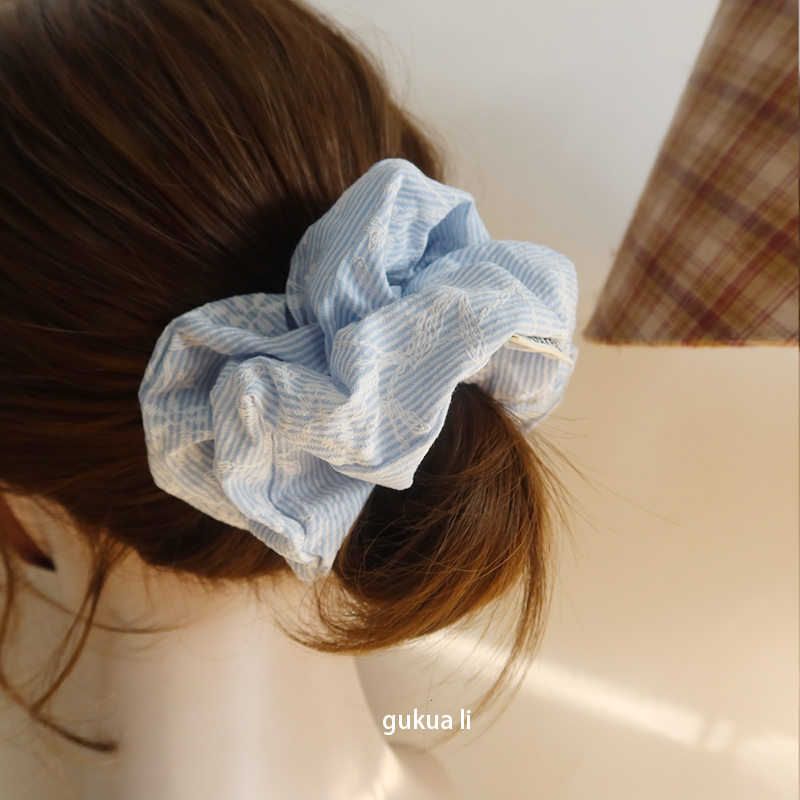 GUKUALI清新蓝色条纹刺绣碎花蕾丝花边发圈女韩系甜美少女发绳新 - GUKUA LI 小姐设计品牌