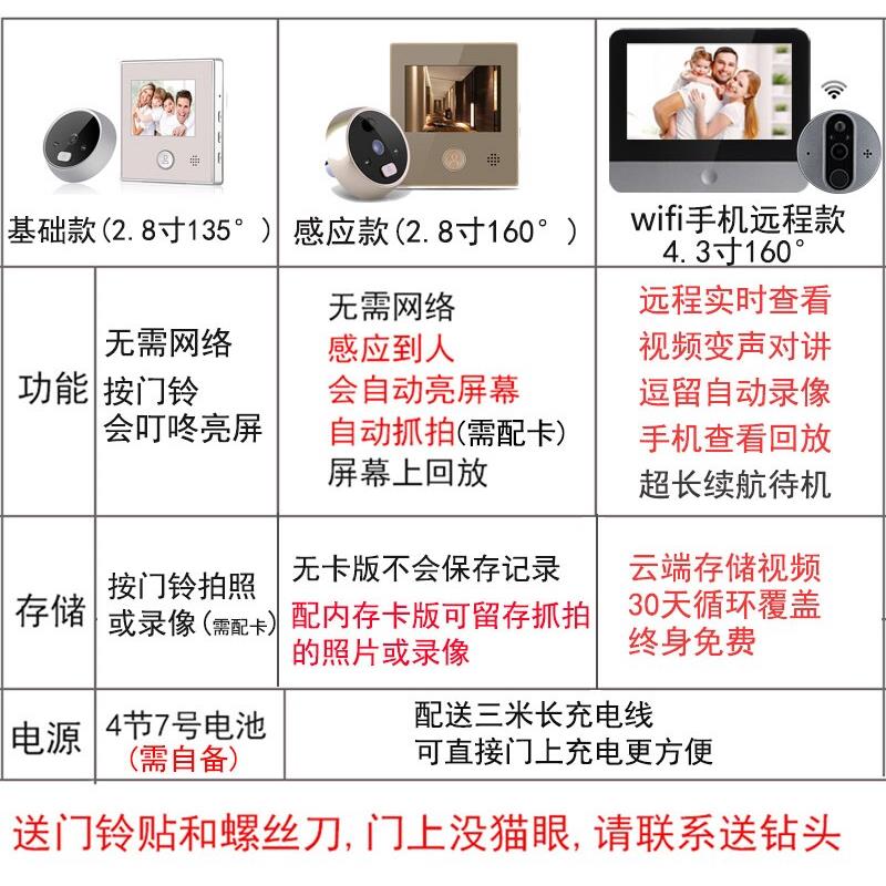 哆嗳智能可视猫眼门铃拍照录像家用防盗门通用门口监控摄像头 - 卓郎百货官营店