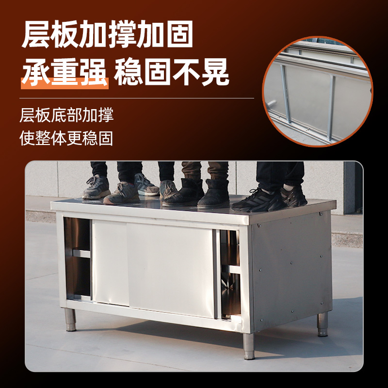 304厨房操作台不锈钢工作台面带拉门案板储物柜切菜桌子商用饭店 - 金浩厨房厨具