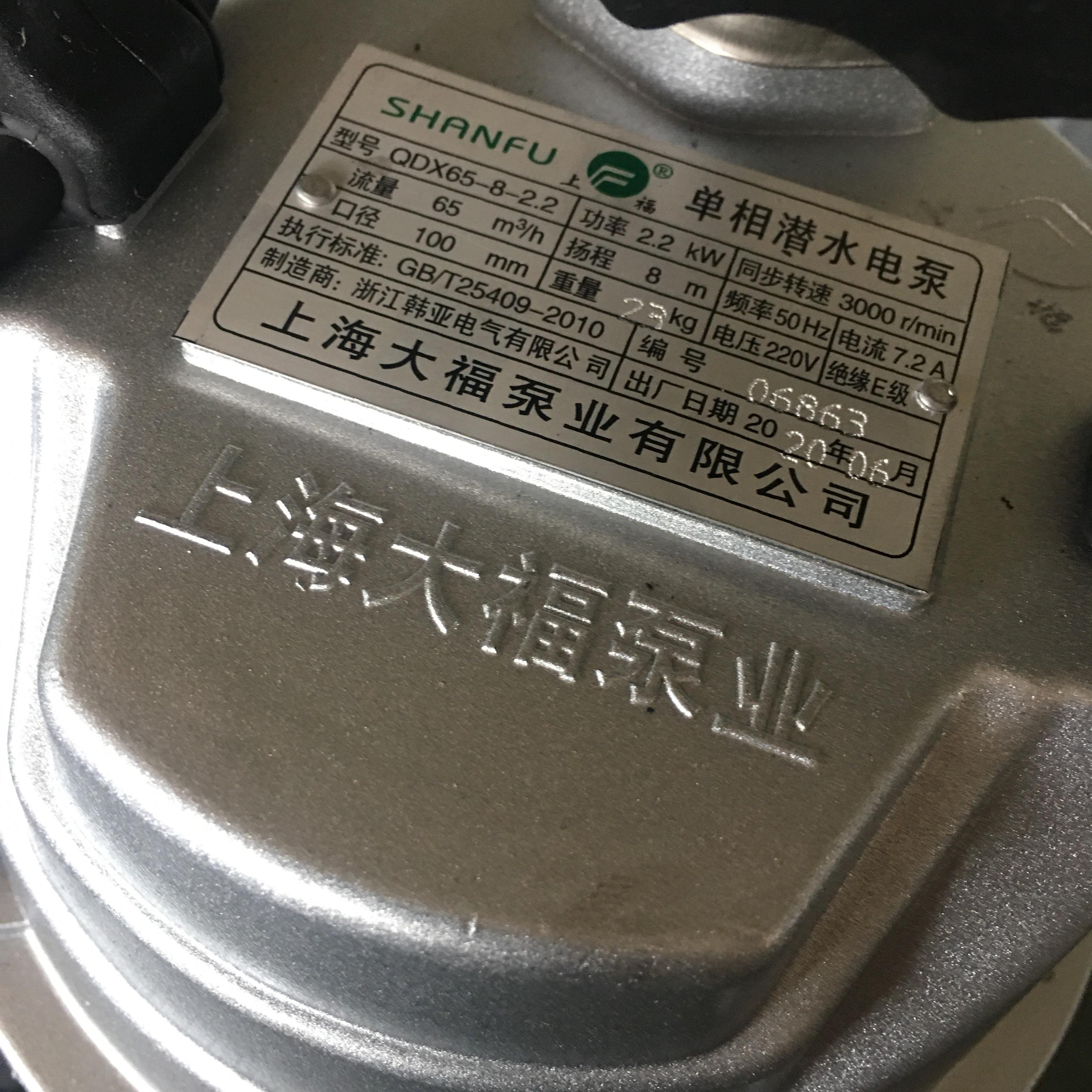 上海大福潜水泵清水农用灌溉浇菜家用深井小型抽水机220v单相铝壳 - 美丰百货官营店