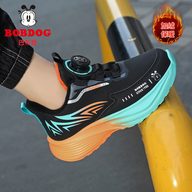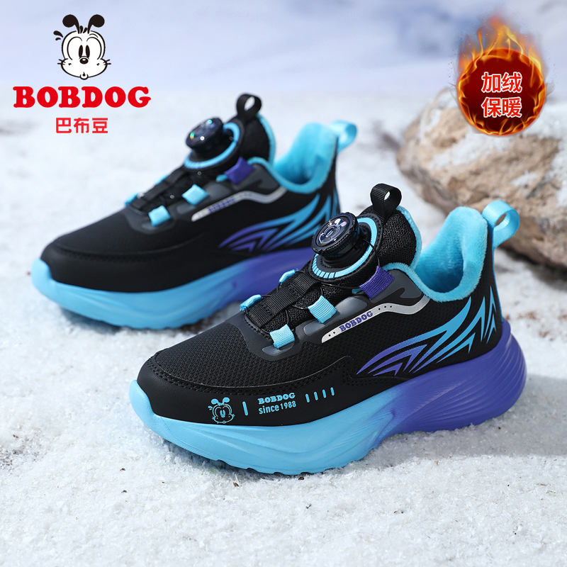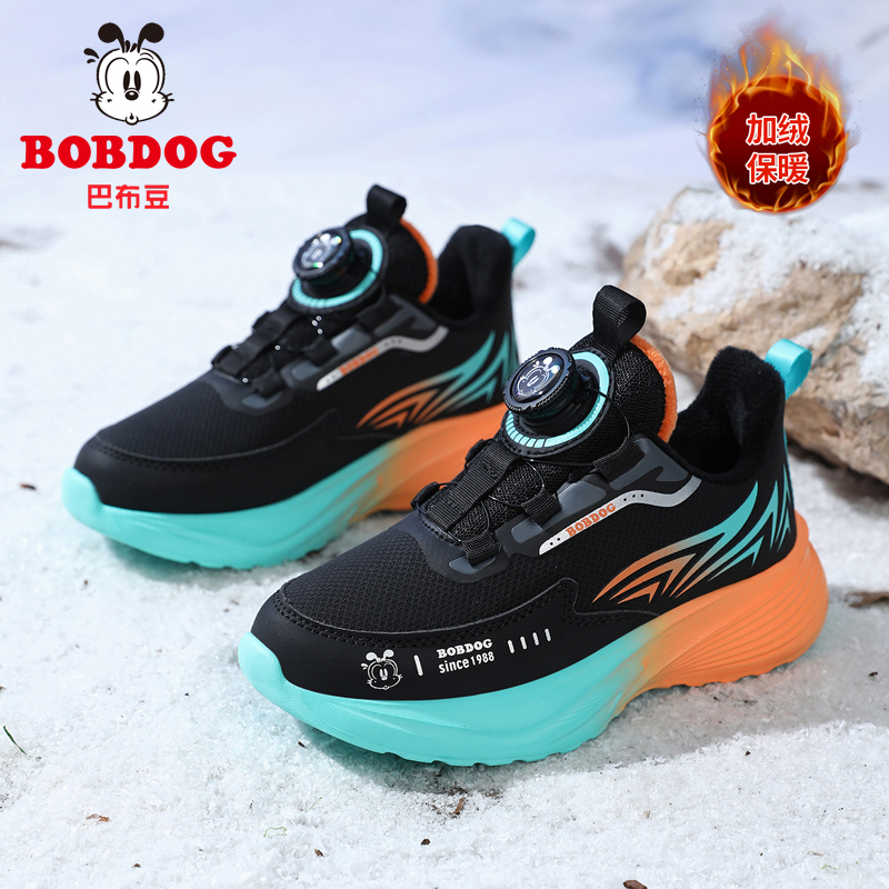 巴布豆童鞋男童二棉鞋冬季新款皮面防水儿童运动鞋中大童碳板跑鞋 - 嘉曼品牌童鞋正品晋江店