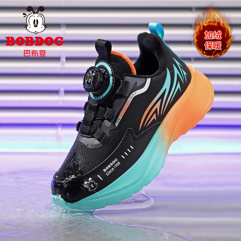巴布豆童鞋男童二棉鞋冬季新款皮面防水儿童运动鞋中大童碳板跑鞋