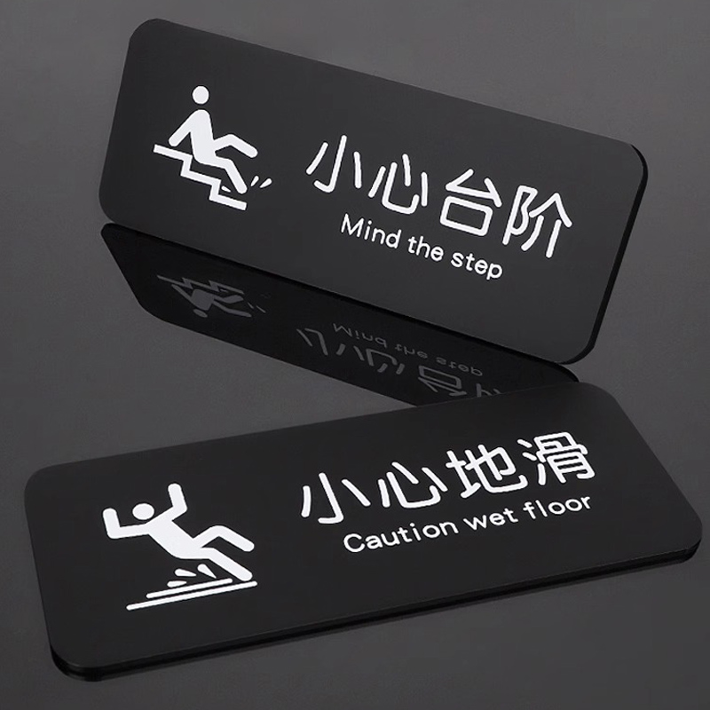 创意小心碰头提示牌当心玻璃警示贴注意安全防撞条静电玻璃门贴纸扶梯夜光脚下地贴双面悬挂亚克力标识字挂牌 - 子杨旗舰店