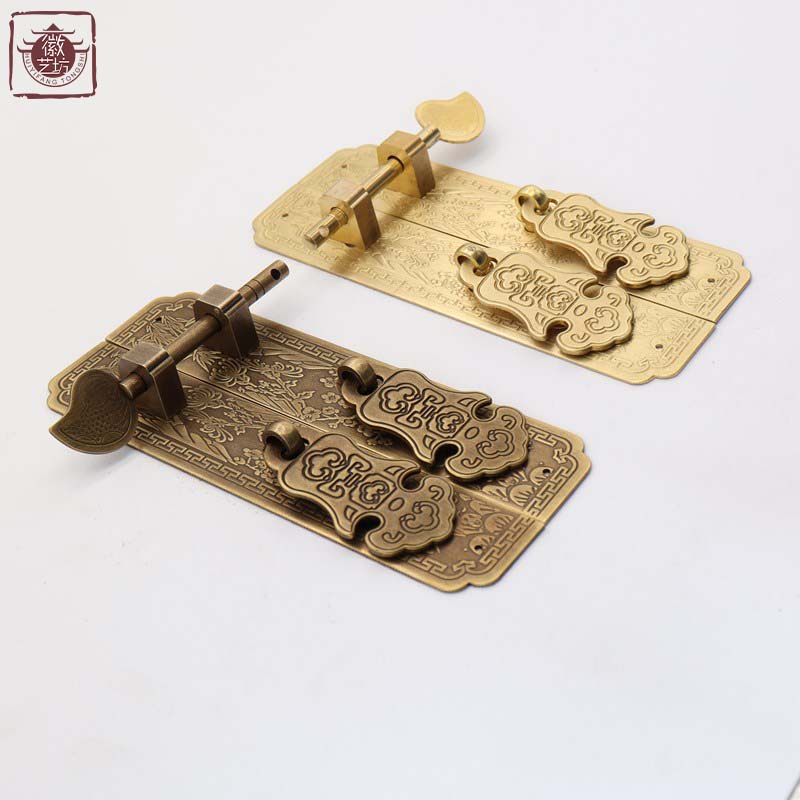 中式纯铜a书柜门复古拉手仿古插销门锁搭扣全铜红木家具实木门把 - tb7335487125