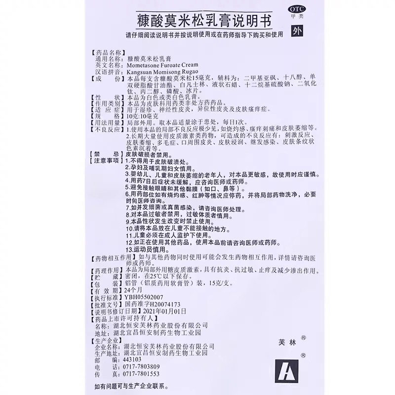 芙林糠酸莫米松乳膏正品10/15g过敏止痒湿疹汗疱疹脂溢性皮炎药膏 - 亿康堂医药专营店