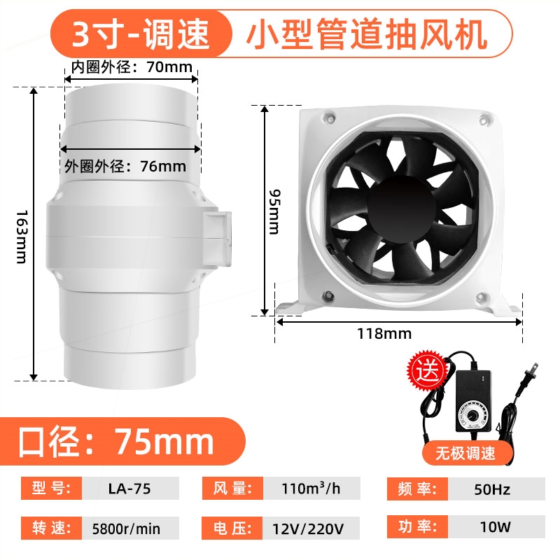 2寸3寸4寸强力小型低噪音管道风压风机12V直流电换气扇排气扇机增 - 慕华家电专柜店