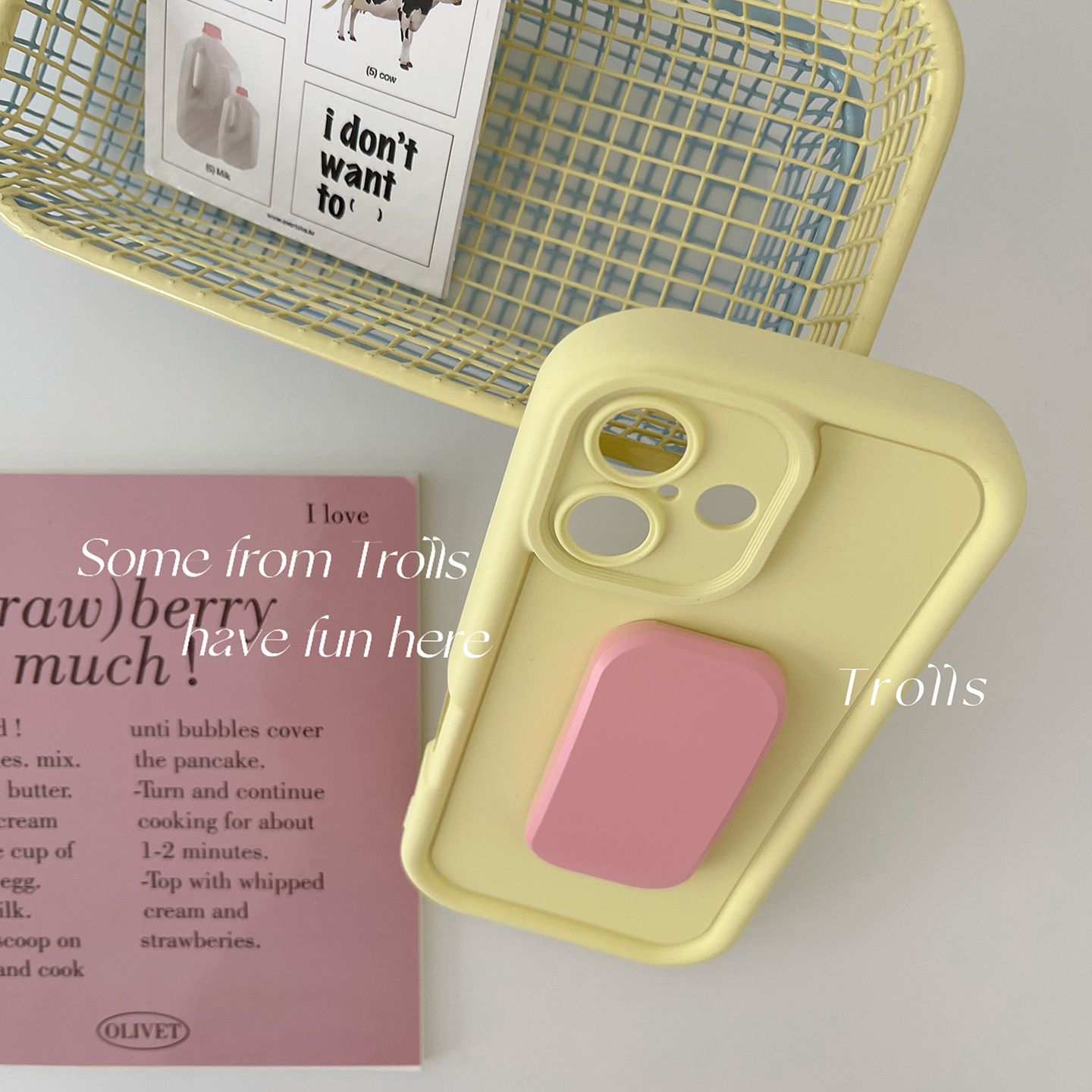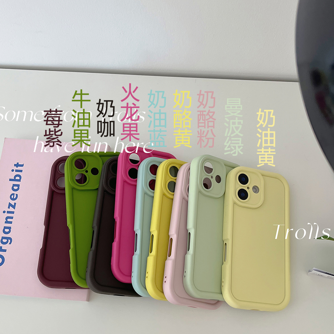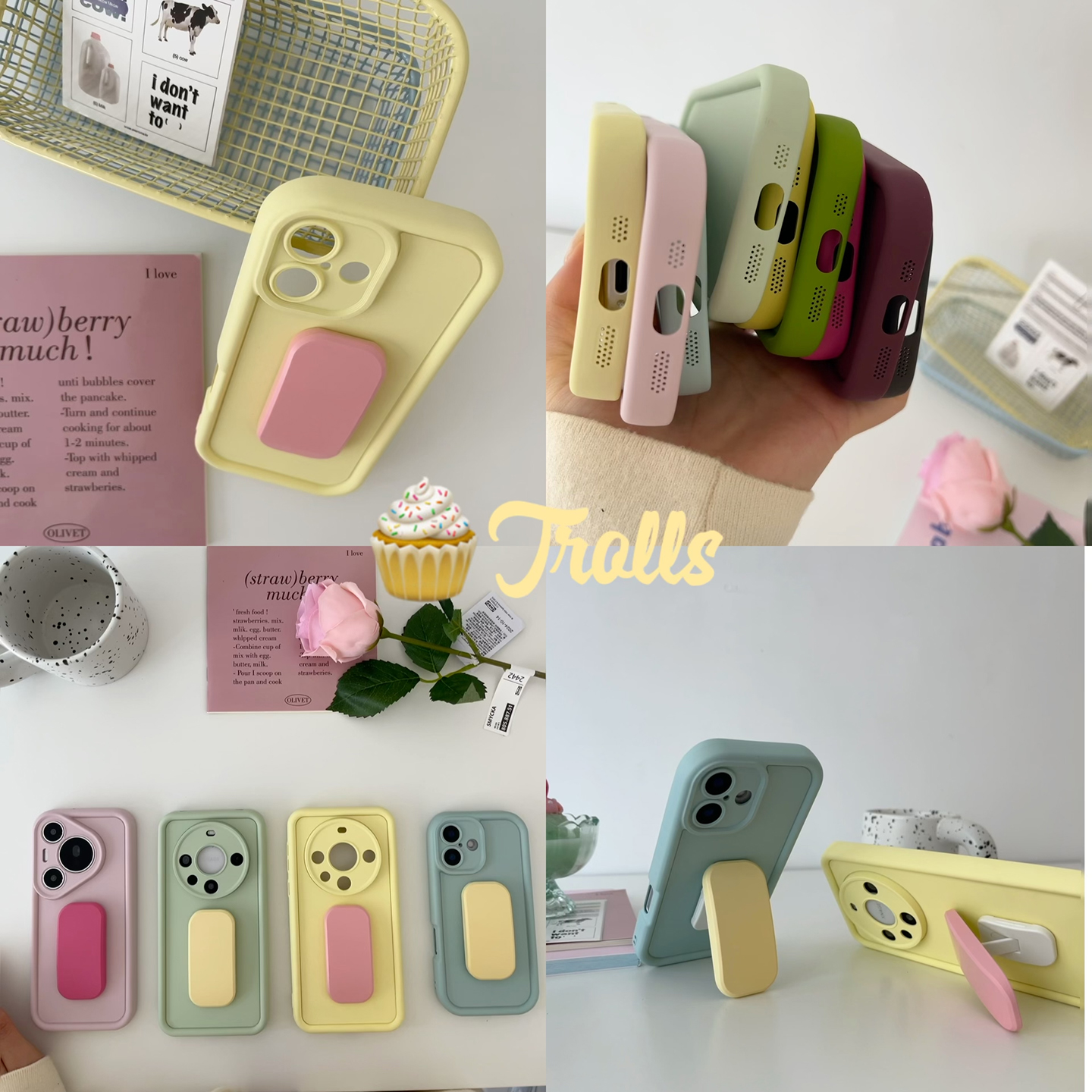 Trolls|2025新款ins清新马卡龙色DIY撞色韩国poptok推拉支架手机壳适用华为mate70pro/oppofindx8iphone16/17