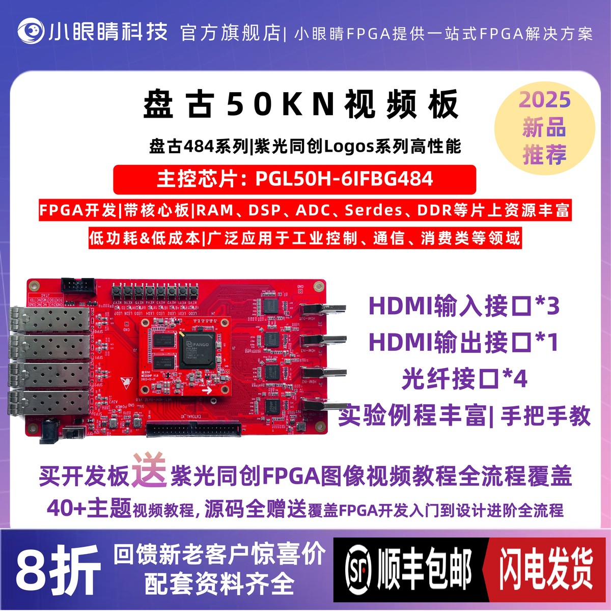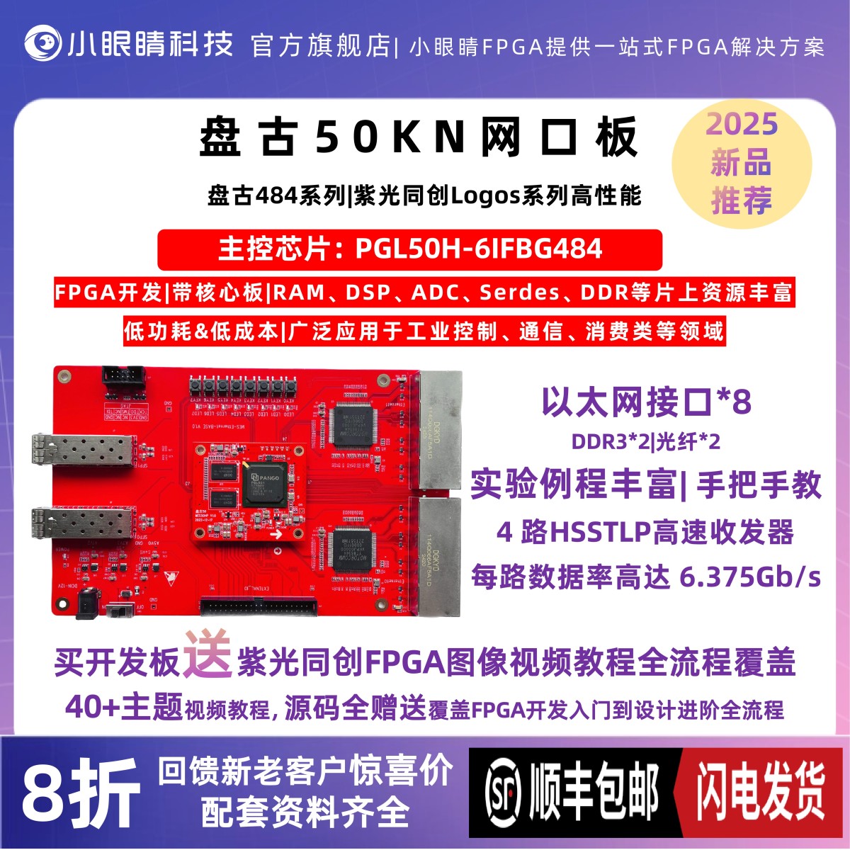 盘古50开发板 MES50HP Logos 紫光PGL50H 视频板 网口板 FPGA比赛 - 帝春临孟凯时专卖店