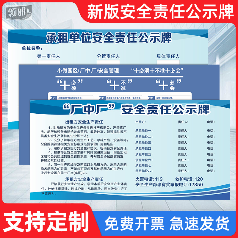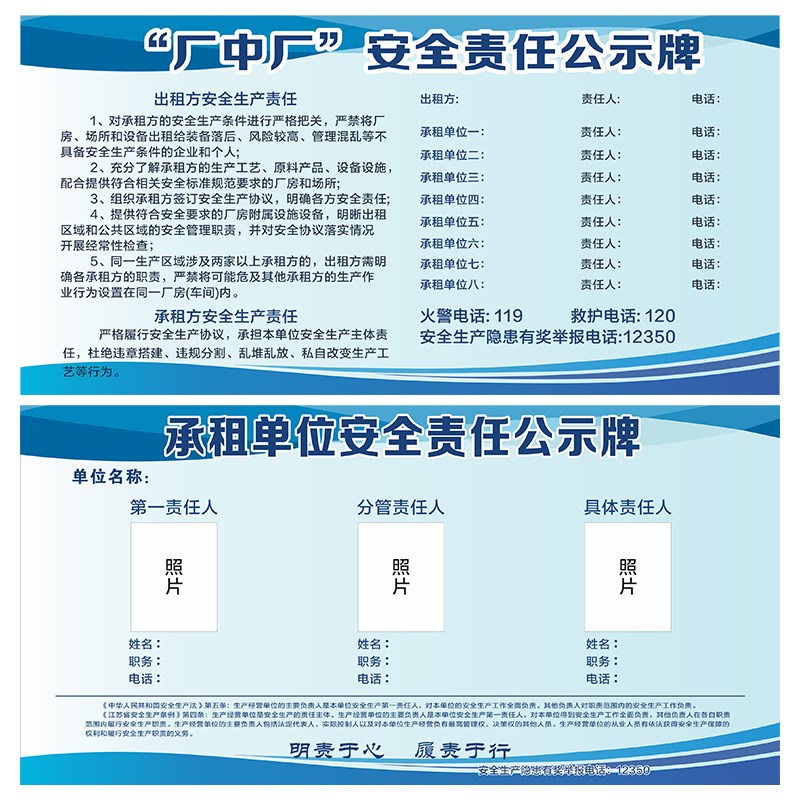 厂房承租单位安全责任公示牌浙江省工业园区厂中厂安全责任公示牌 - 诚珠轩商城
