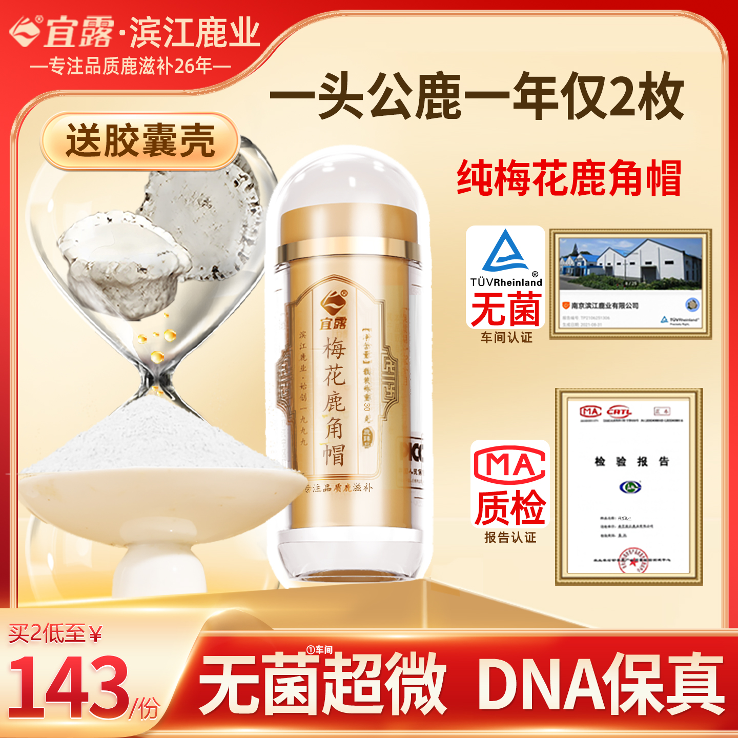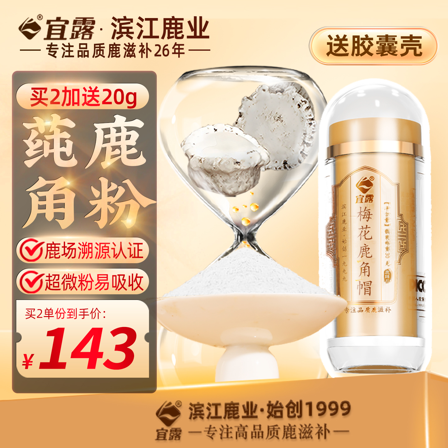 宜露梅花鹿角帽粉鹿角粉吉林鹿角帽托盘鹿角散整个打粉纯正超微粉 - 宜露滋补养生旗舰店