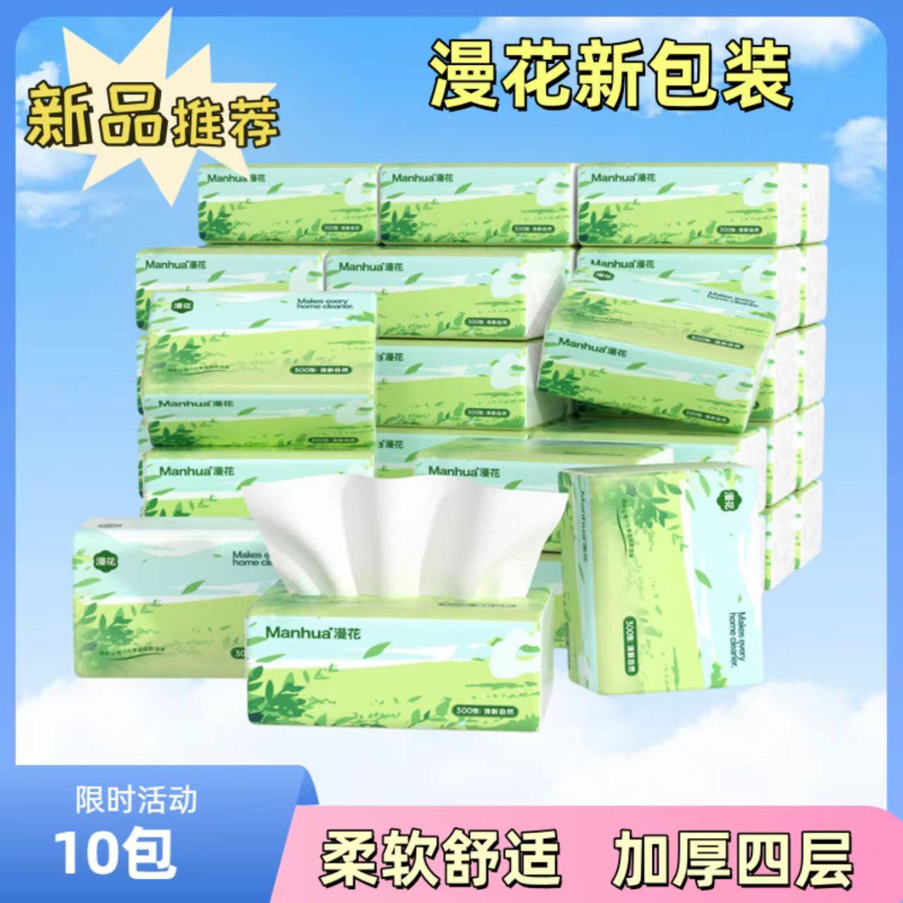漫花10包装整箱家用面巾纸加厚四层柔软舒适 - garri洗护用品店