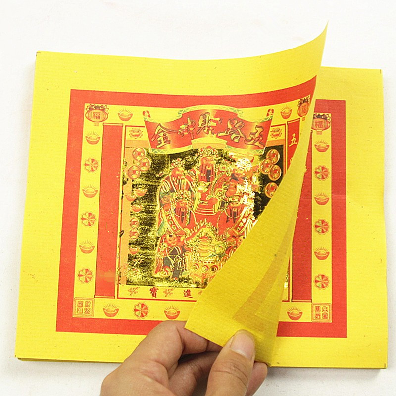 包邮加厚8寸五路贝申金图案单面黄纸一包80张 - 小农有限公司