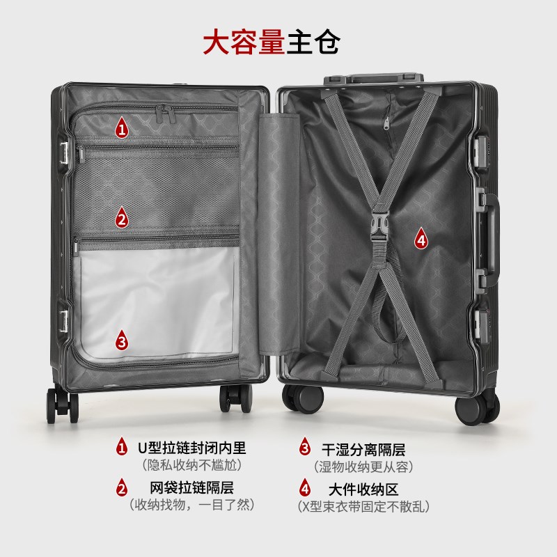 前开口商务拉杆箱万向轮2024新款行李箱K铝框带密码锁旅行女可座 - 乐秋居日用品