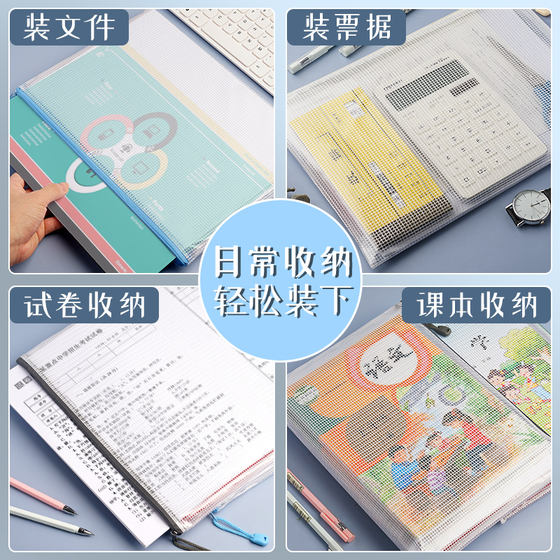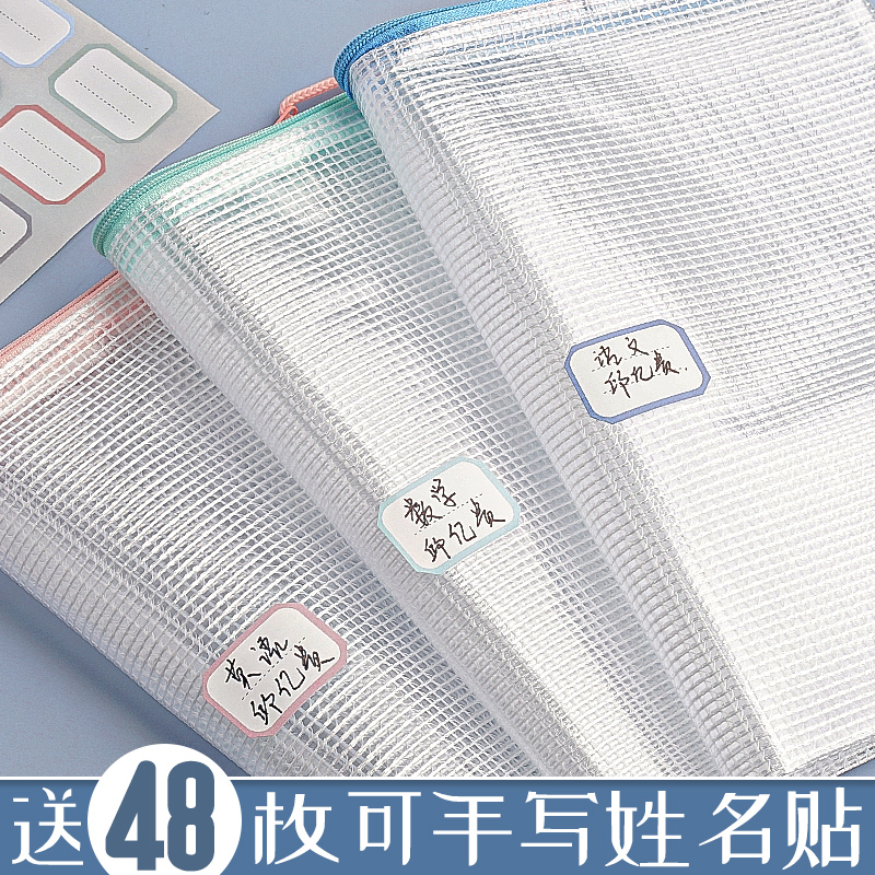 A4文件袋科目分类袋书袋透明文件收纳袋拉链式档案塑料办公学生专用初中生小学生学科分类袋试卷收纳袋定制H1