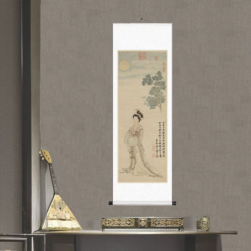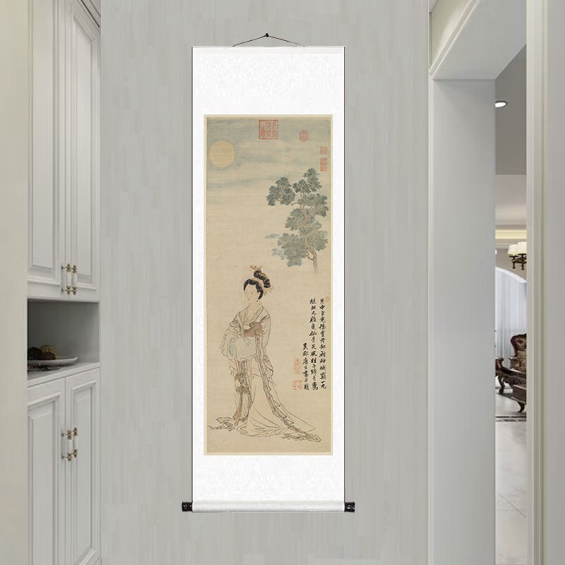 明 唐寅 嫦娥奔月图 唐伯虎仕女图仿古K画挂轴真迹高清复制品装饰 - 顺珍馆日用品