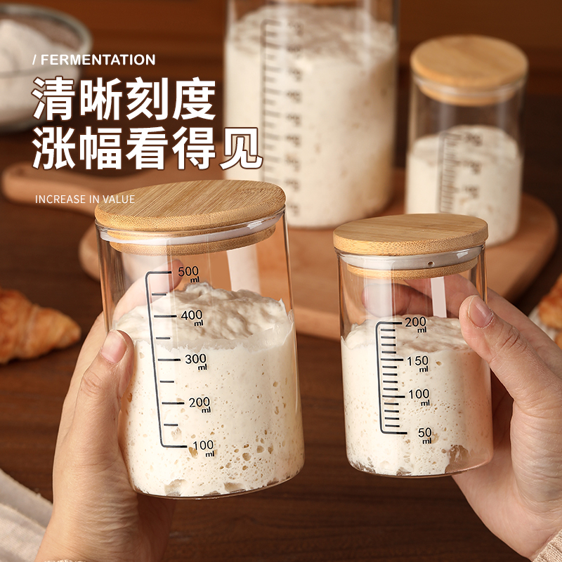 酵种培养皿带刻度玻璃发酵罐鲁邦波兰种天然酵母密封瓶子烘焙工具 - 白岛食品专营店