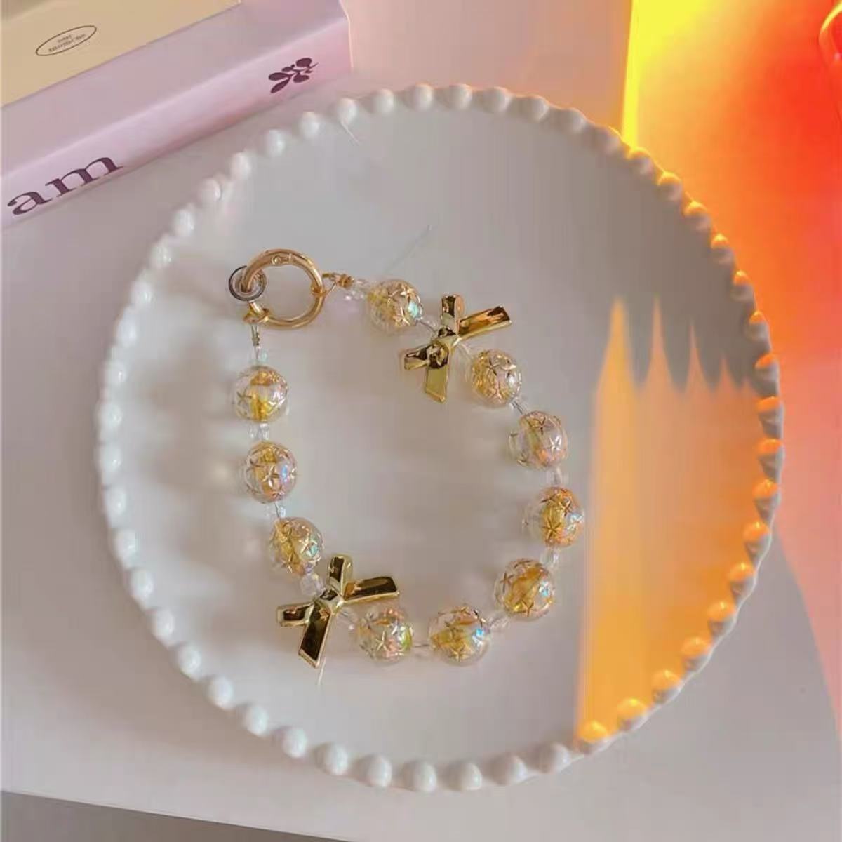 财运不断!金色水晶蝴蝶结玄学手机链精致高级感包包挂件招财配饰 - 卖个壳子