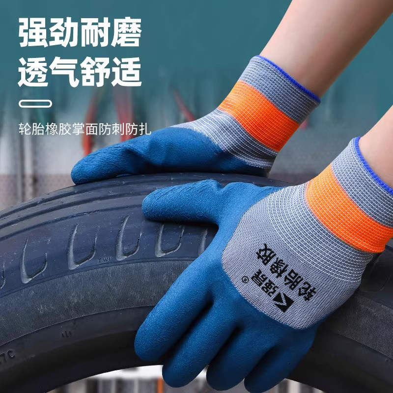 正品轮胎橡胶劳保手套工作耐磨防滑透气乳胶浸胶加厚工地建筑作业