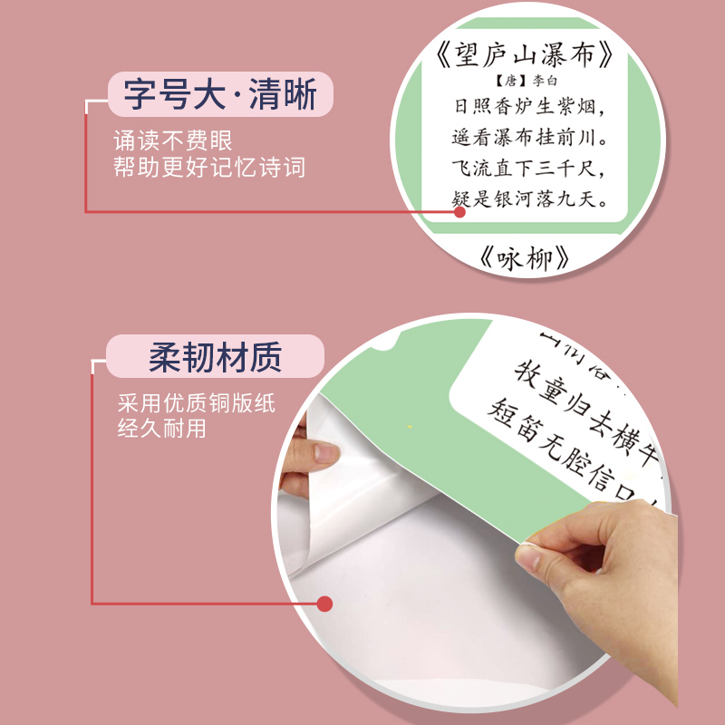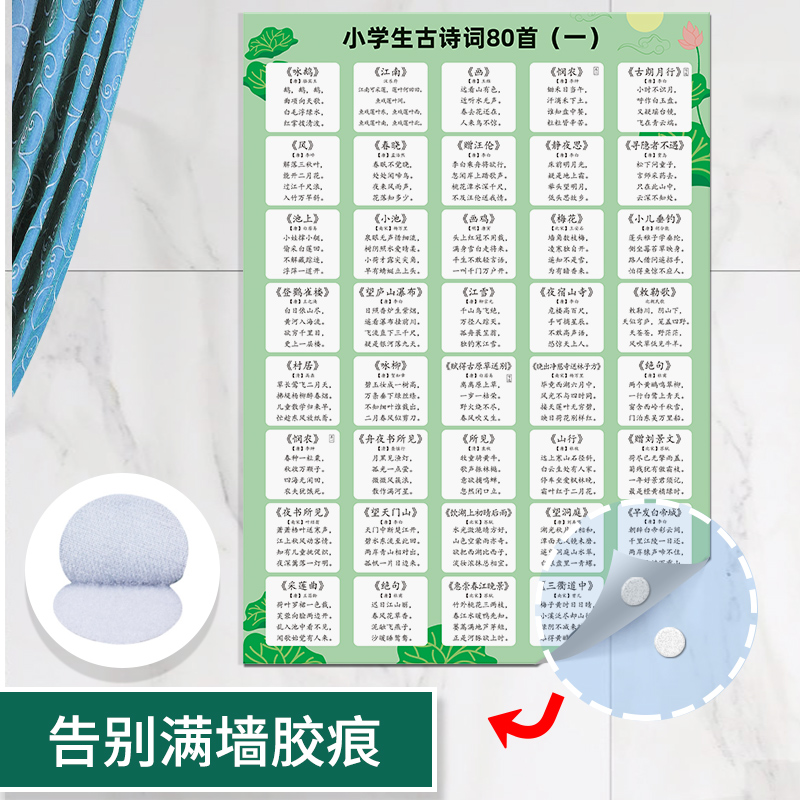 80首小学生必背古诗词大全挂图人教版幼儿童早教识字海报墙贴教具 - 附录玩具专营店