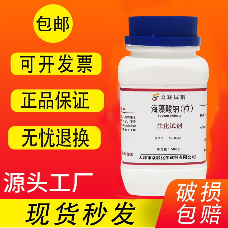 您的位置:他他商城  >   >  海藻酸钠粉末颗粒 BR500g 分析纯褐藻胶实验用水精灵diy化学试剂