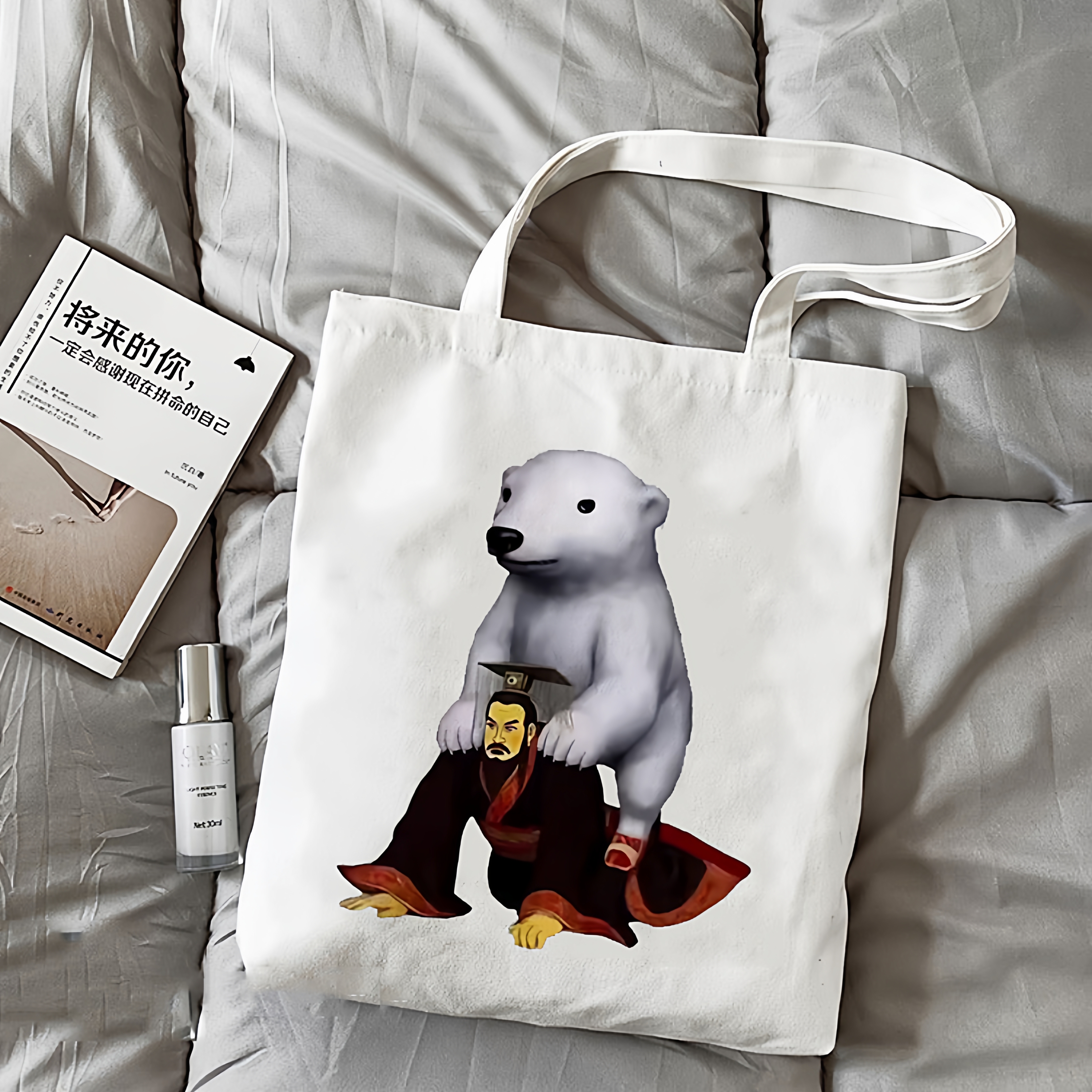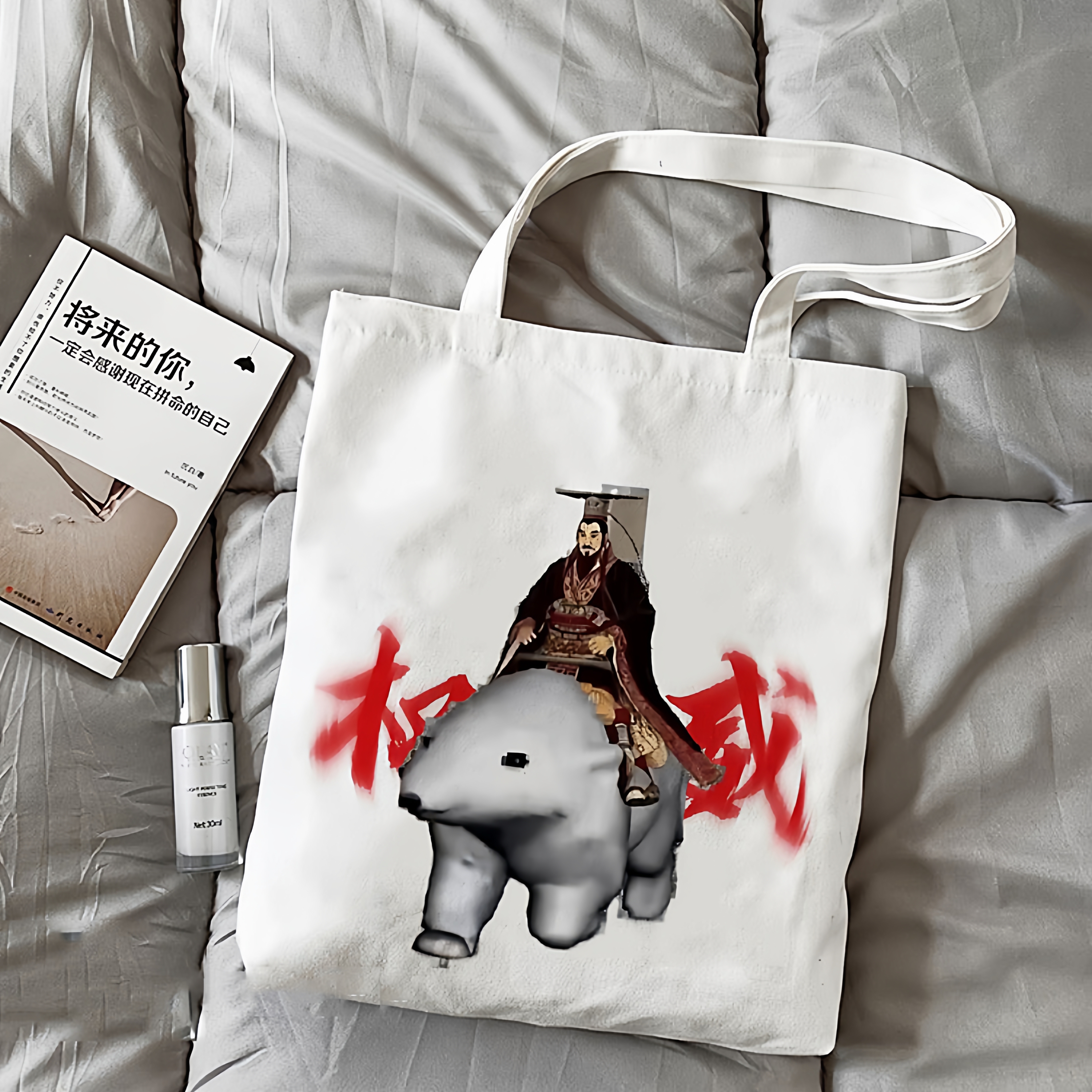 嬴政秦始皇骑北极熊权威帆布包抽象卡通动漫恶搞表情补习帆布袋 - 泽泽木玩意