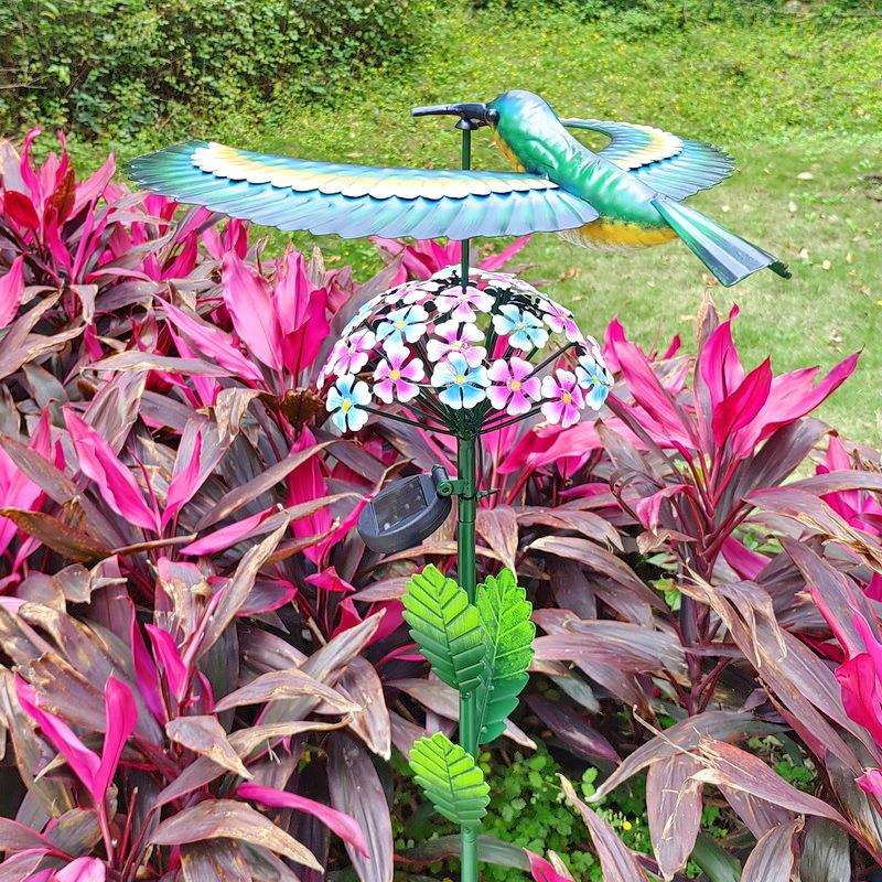 户外景观花园灯饰铁艺摆件风动小鸟旋转铁艺动物花朵落地组合插件 - d[s551651239]