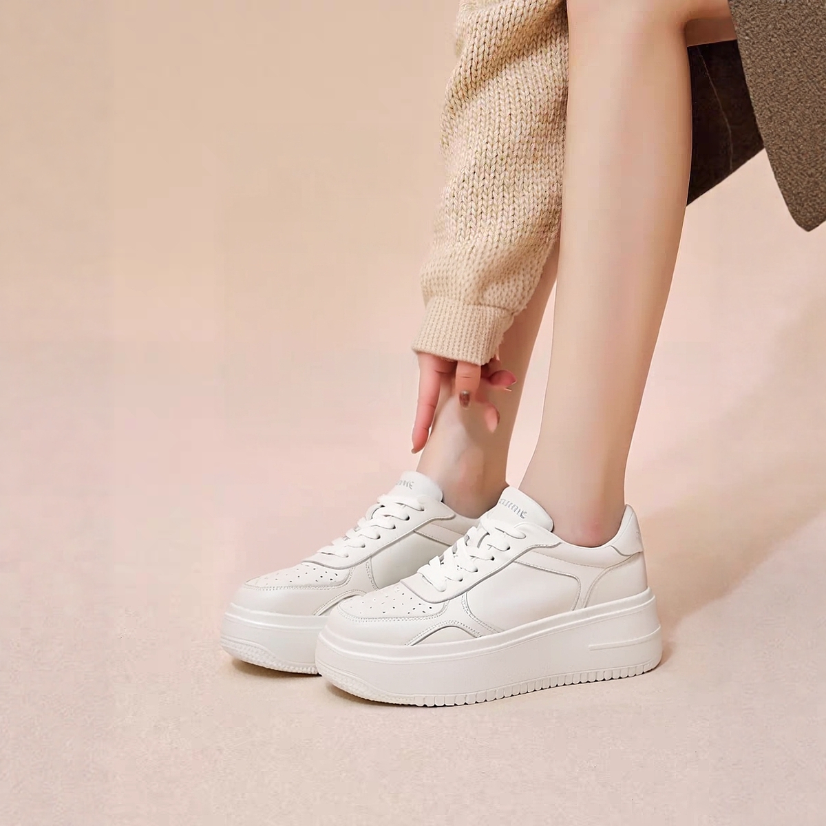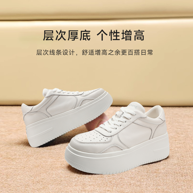 红粉知己2025新款真皮女鞋厚底增高松糕小白鞋百搭休闲运动鞋板鞋 - 红粉知己旗舰店