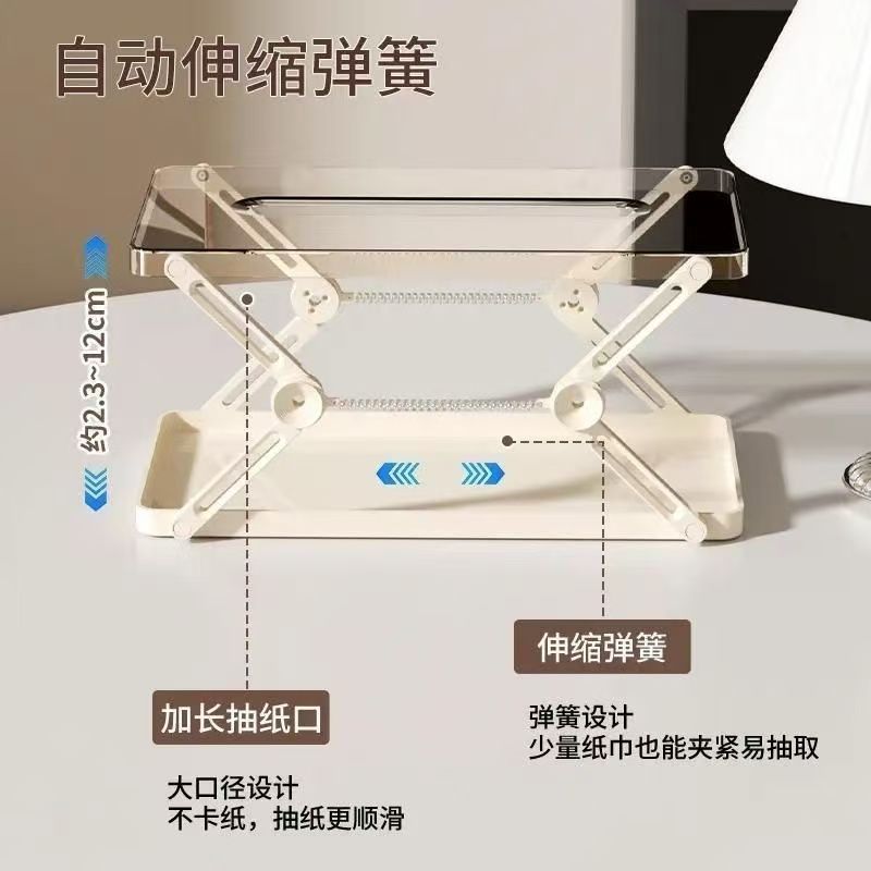 弹簧纸巾盒家用客厅茶几可伸缩纸巾收纳盒自动升降床头湿巾抽纸盒 - 初见满眼是伱
