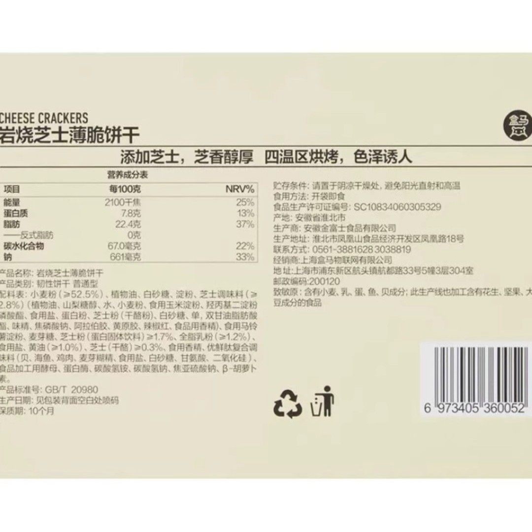 盒马岩烧芝士薄脆饼干190g 新西兰进口芝士 味香浓郁休闲小吃零食 - 畔青缇旗舰店