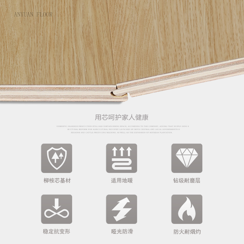 家用防水净味耐磨橡木本色多层实木复合地板灰色防滑12mm防火B1级 - 福运轩商城