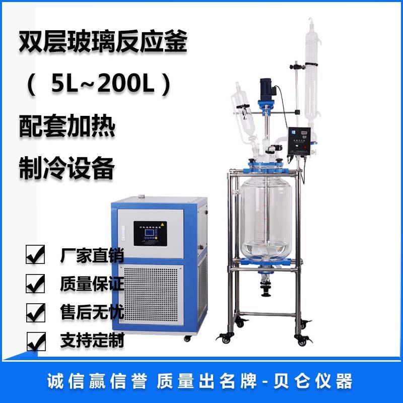 上海贝仑现货直供双层玻璃反应釜100L玻璃反应釜密封搅拌一体