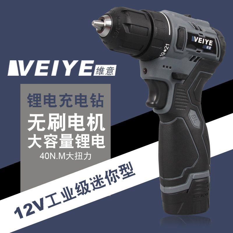 维意迷你V无刷充电钻手电钻充电式短机身无刷锂电钻小钢炮