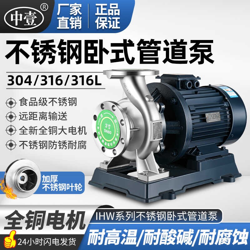 不锈钢管道离心泵卧式抽水泵耐腐蚀耐酸碱高扬程380V增压泵化工泵 - 诗万狂欢店