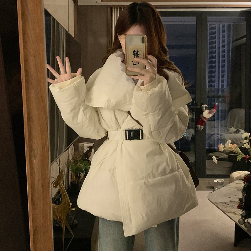 实拍 设计小众大翻领羽绒服女冬季韩版收腰显瘦保暖面包服外套