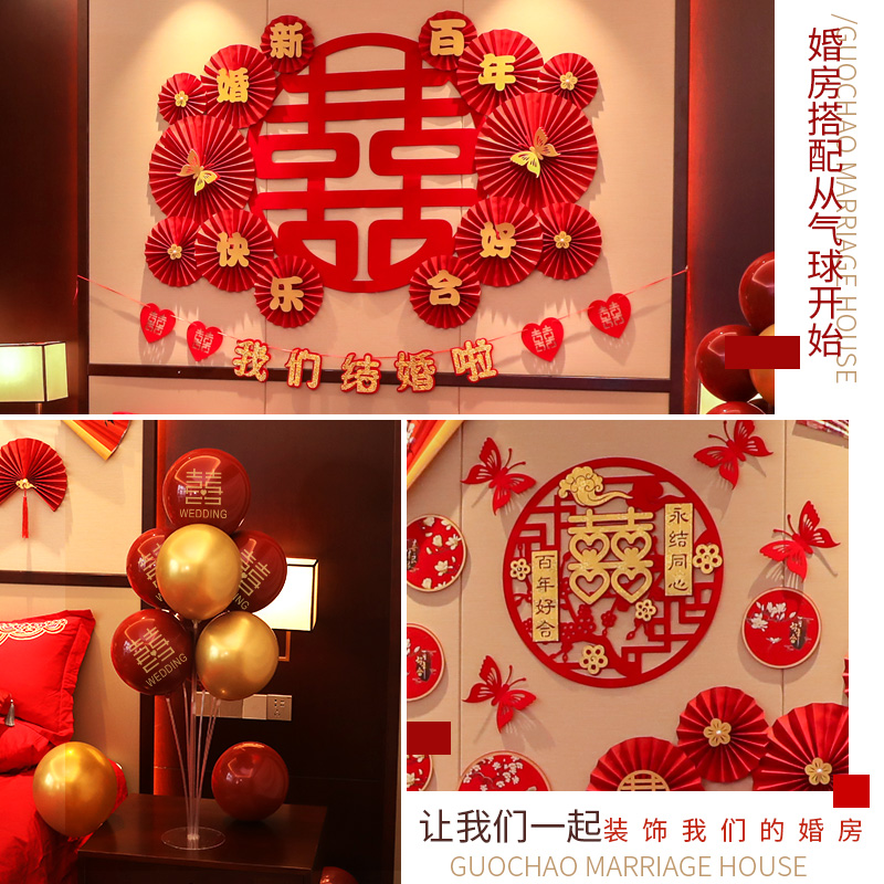 婚房气球布置套装婚礼男方新房卧室装饰结婚拉花套餐婚庆用品大全 - 宛婷精品城