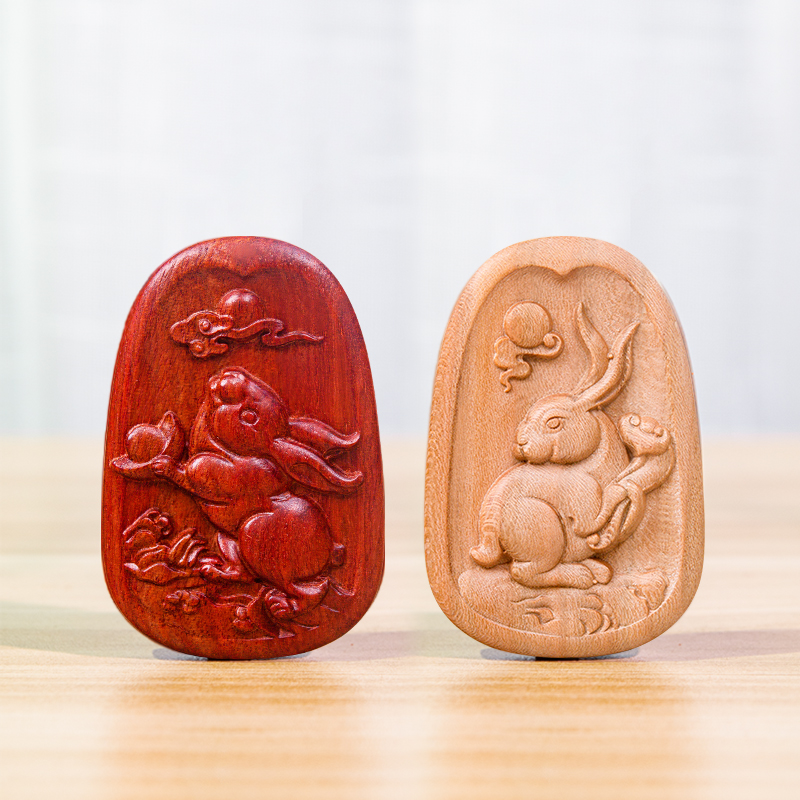 兔子吊坠生肖属相属兔佩戴兔形项链木质木头兔型挂件吉祥物配饰品 - 佛尘轩