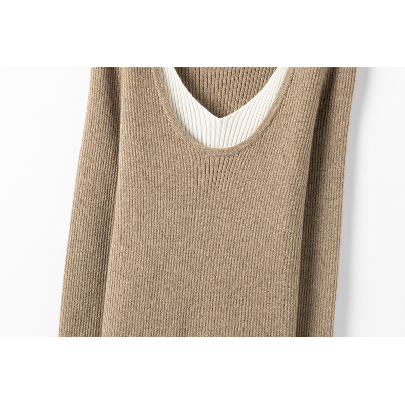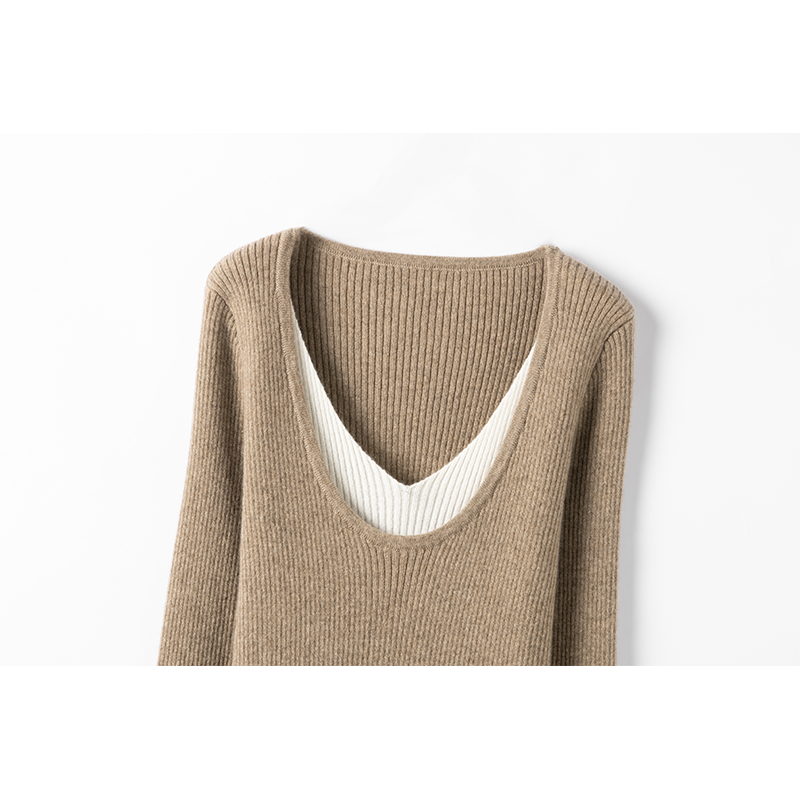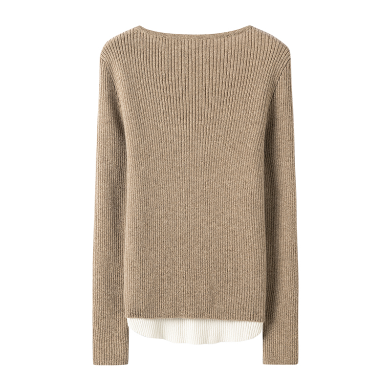 轻若无物的温暖~撞色假两件针织衫女秋冬新款显瘦打底羊绒衫