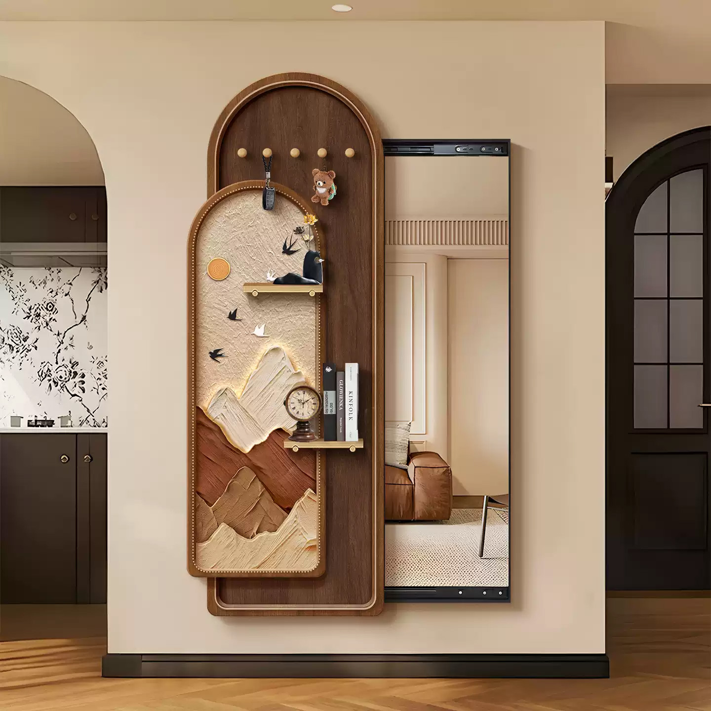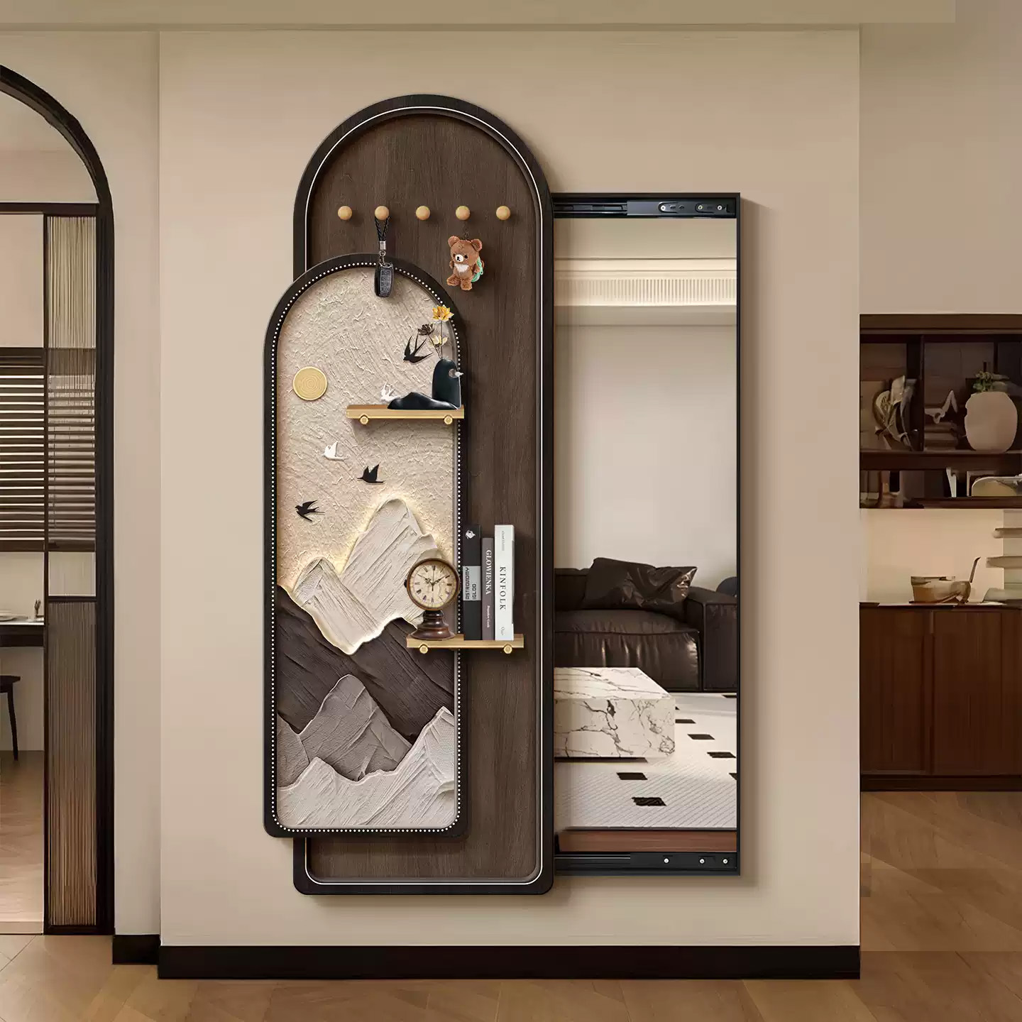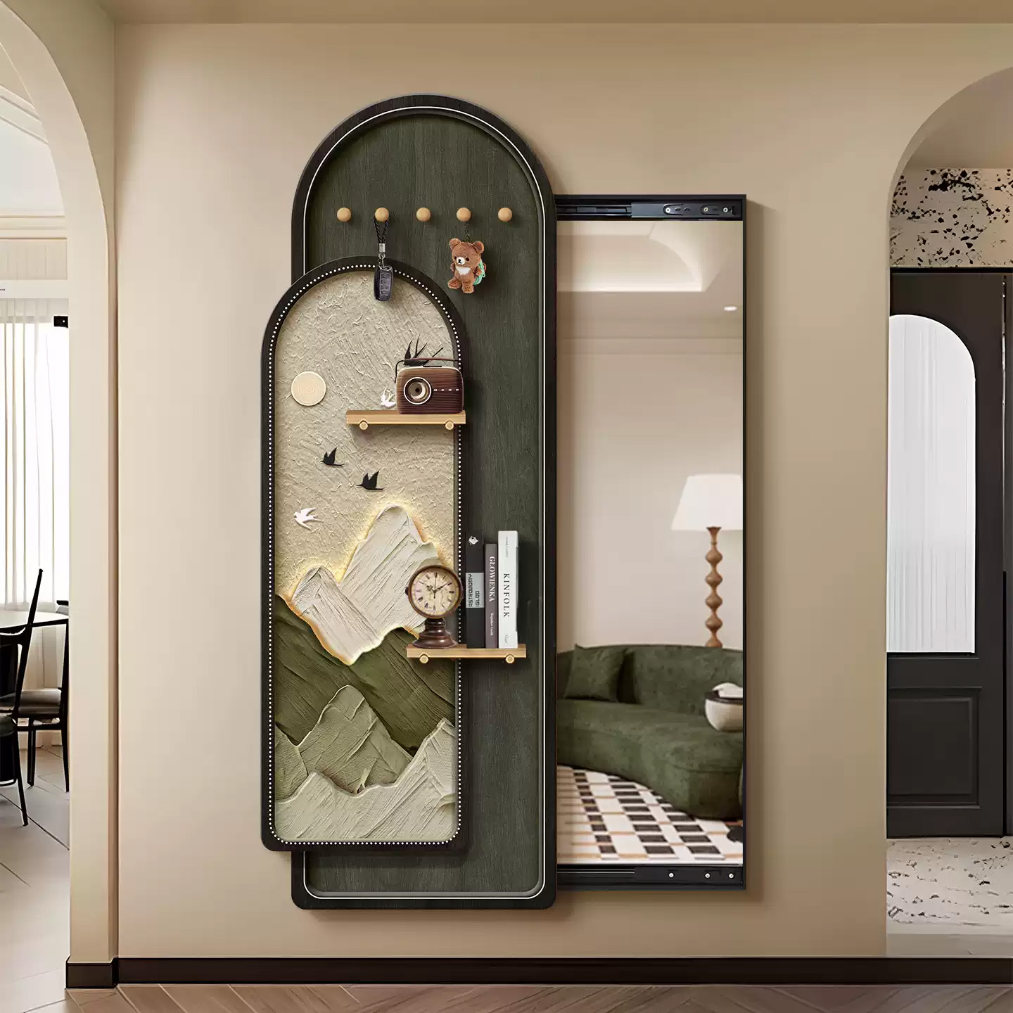您的位置:他他商城  >   >  中古风洞洞板隐形穿衣镜隐藏式全身镜子挂画暗藏式玄关镜子装饰画