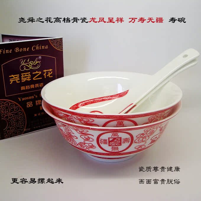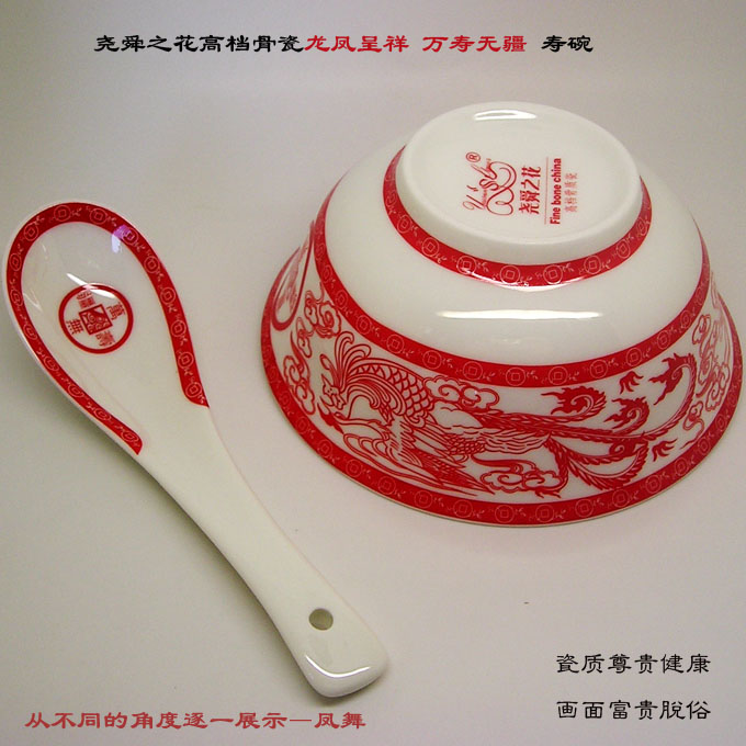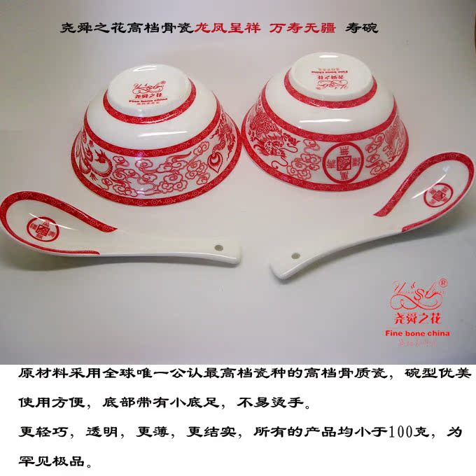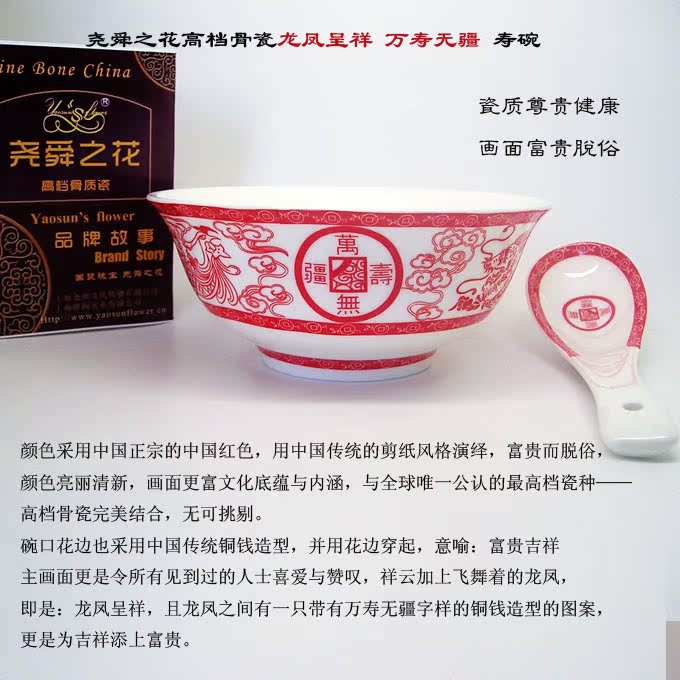 尧舜之花骨瓷碗龙凤呈祥万寿无疆创意寿碗谢礼寿礼 - 尧舜之花品质生活馆