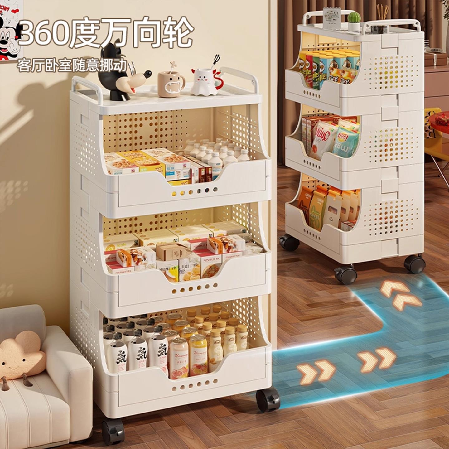 零食置物架小推车收纳架子落地多层客厅移动多功能储物架带万向轮 - 发大工厂直销