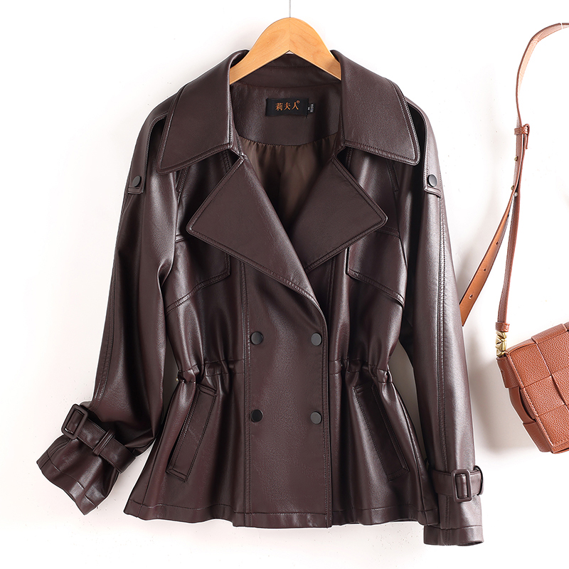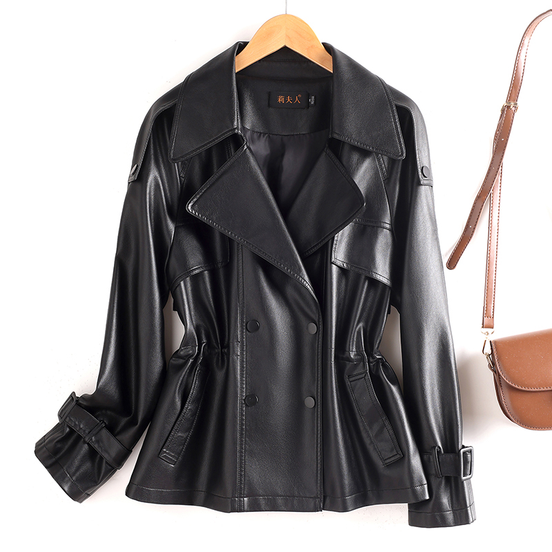 2025新款真皮皮衣女短款宽松机车皮夹克高级感绵羊皮收腰风衣外套 - 莉人女装