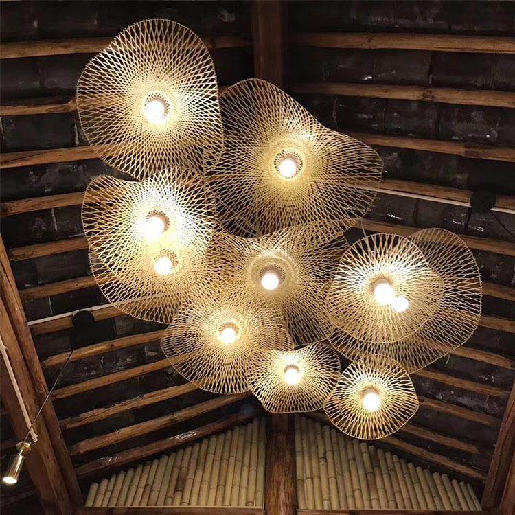 创意东南亚楼梯灯长吊灯新中式竹编禅意茶室灯个性店铺艺术造型灯 - 明话商贸城