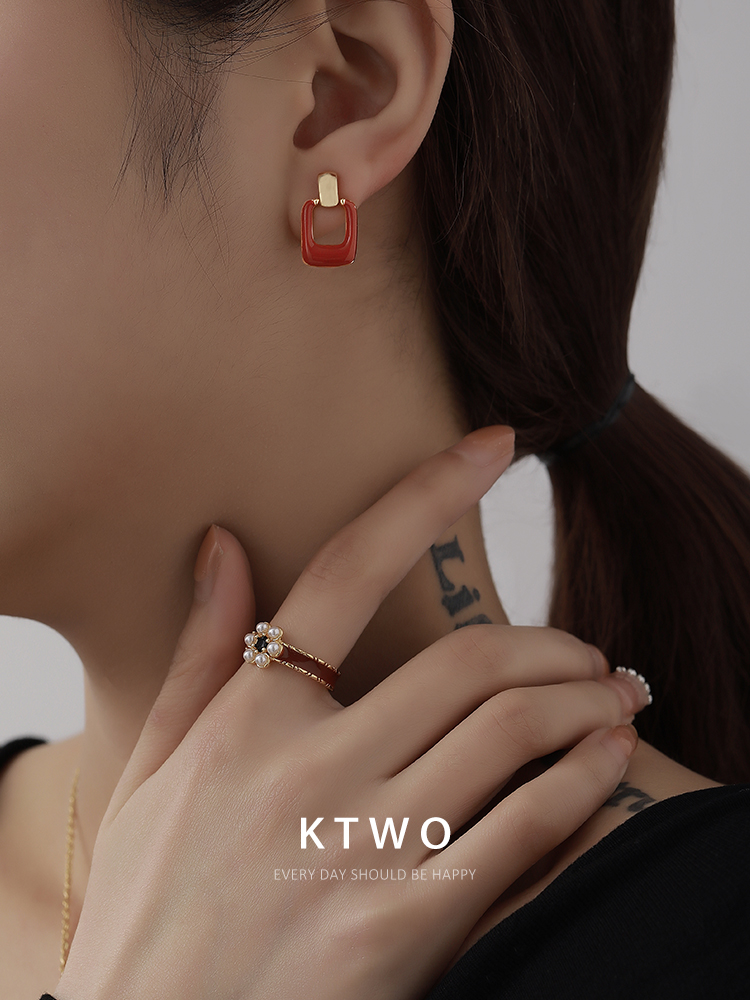 巴黎法式复古滴釉耳坠耳环女小众设计k金色925银针轻奢高级感耳饰 - ktwo旗舰店