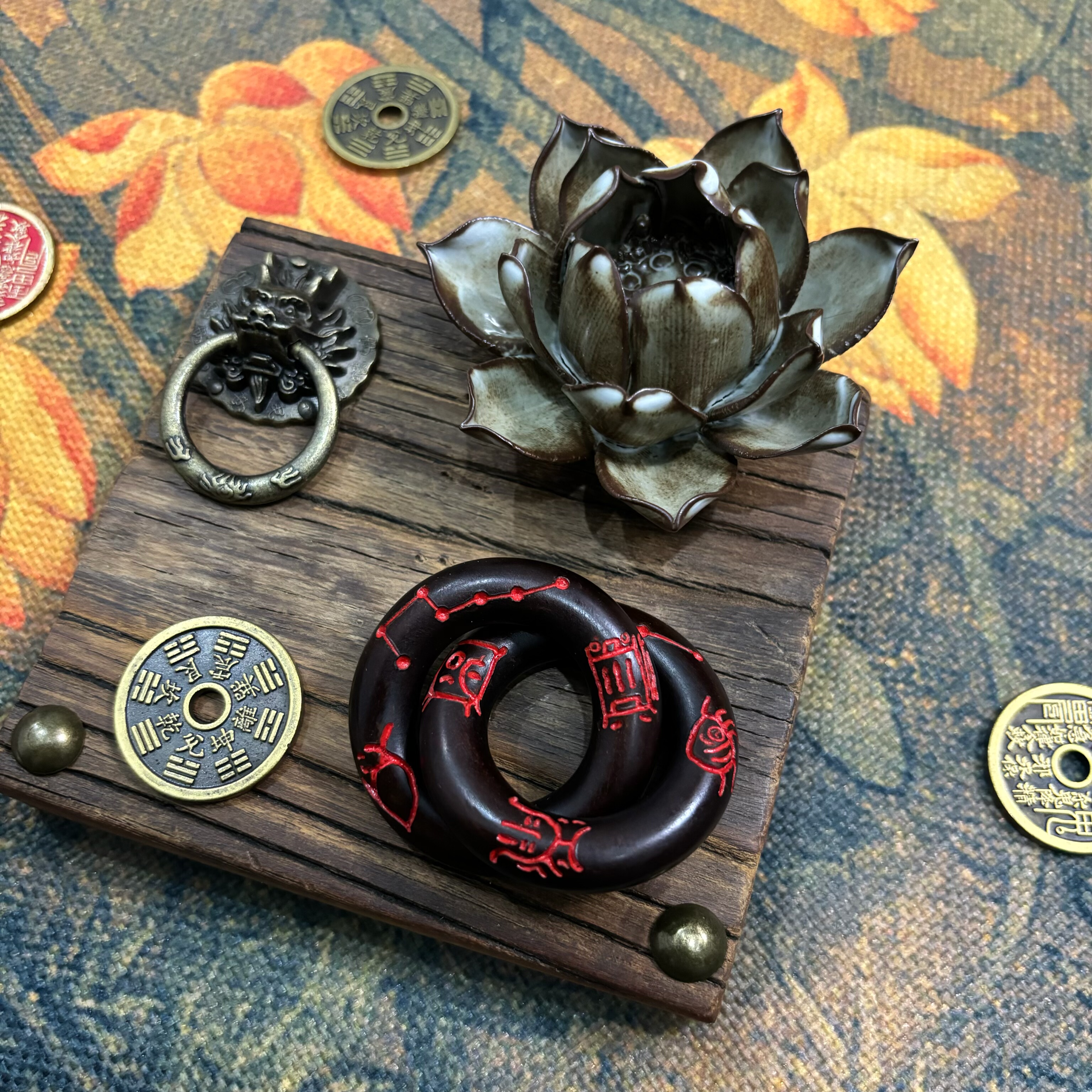 雷击枣木乾坤圈玉化料手工刻字雕刻五岳真形图阴阳乾坤圈吊坠手撵 - 桃木匠心工艺店