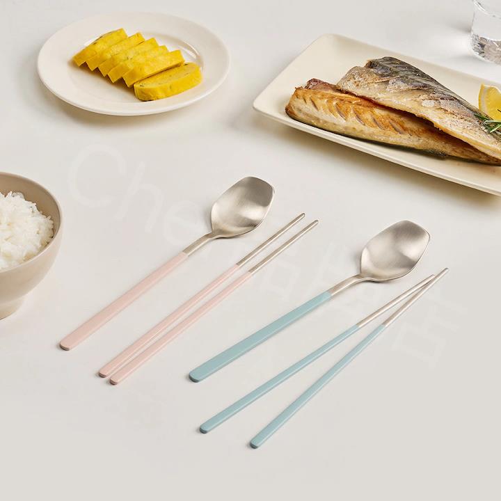 【韩国原单】Cher食品级304不锈钢筷勺套装喷漆手柄韩式ins简约风 - 标青春怎筱专卖店